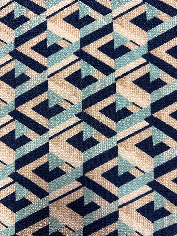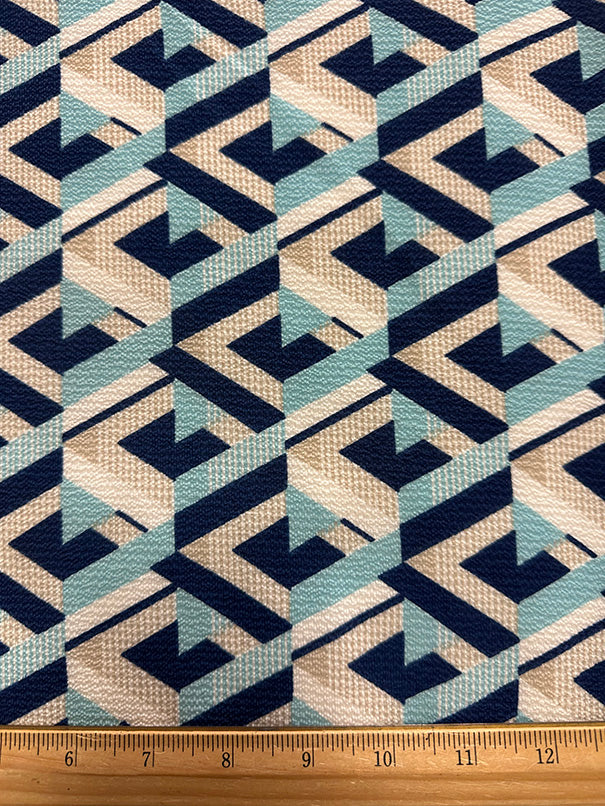 2 YD PC-Blue Multi Geometric Poly Print High Crepe Fabric
