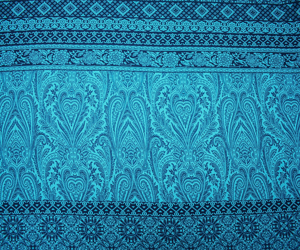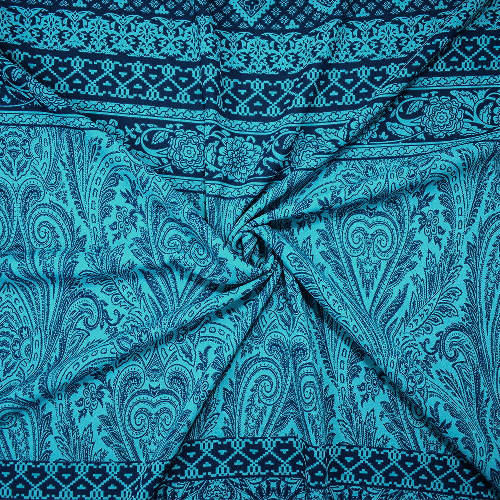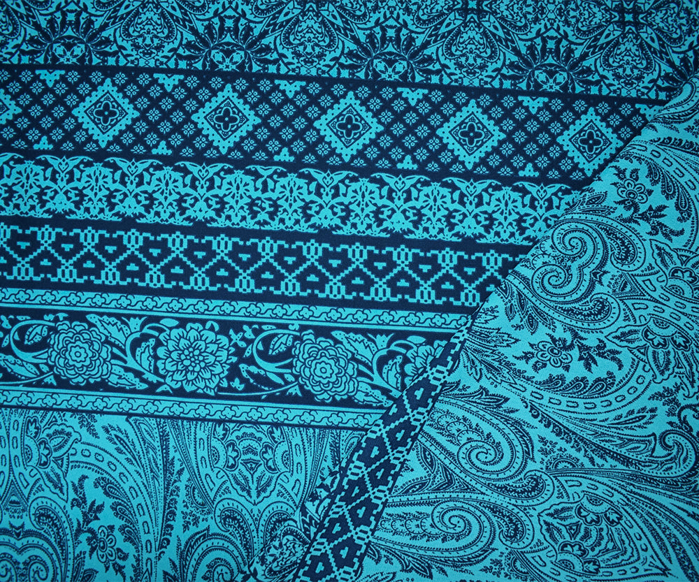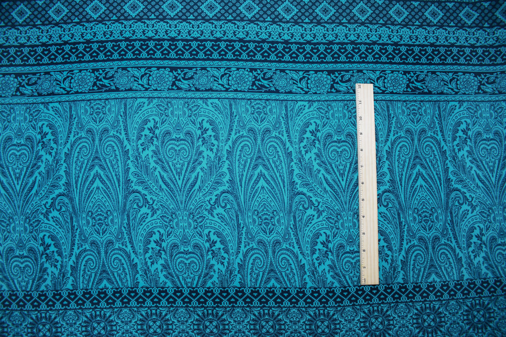 4 YD PC-Turquoise-Blue Poly Baroque Stripe Printed Georgette Woven Fabric