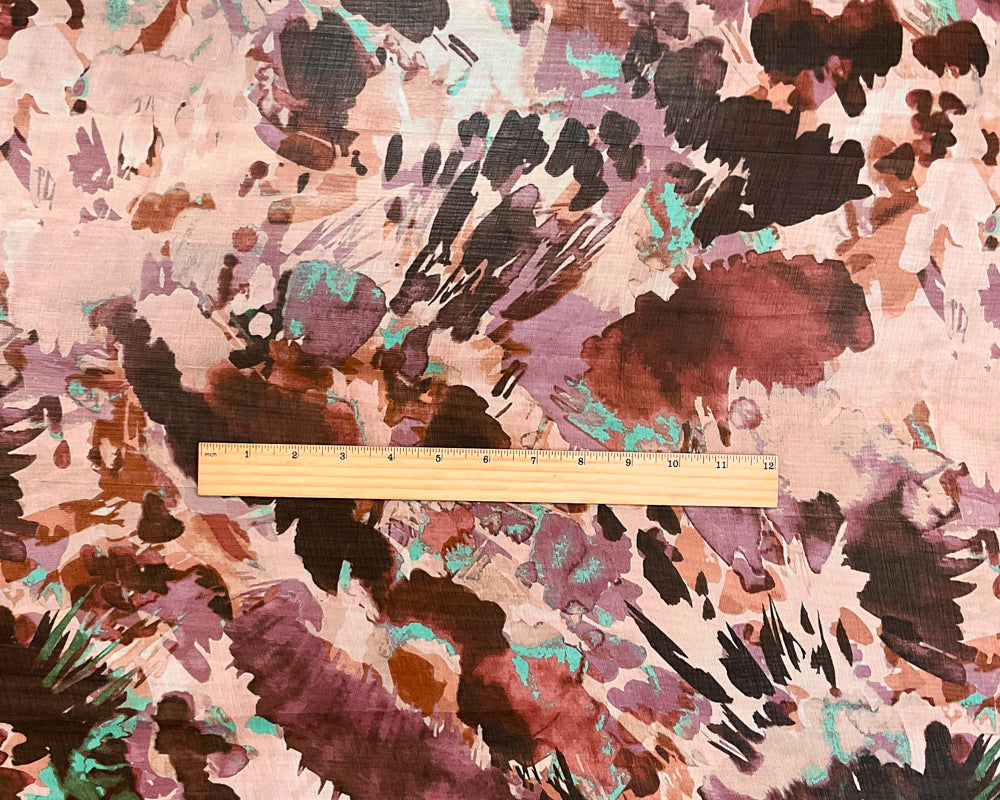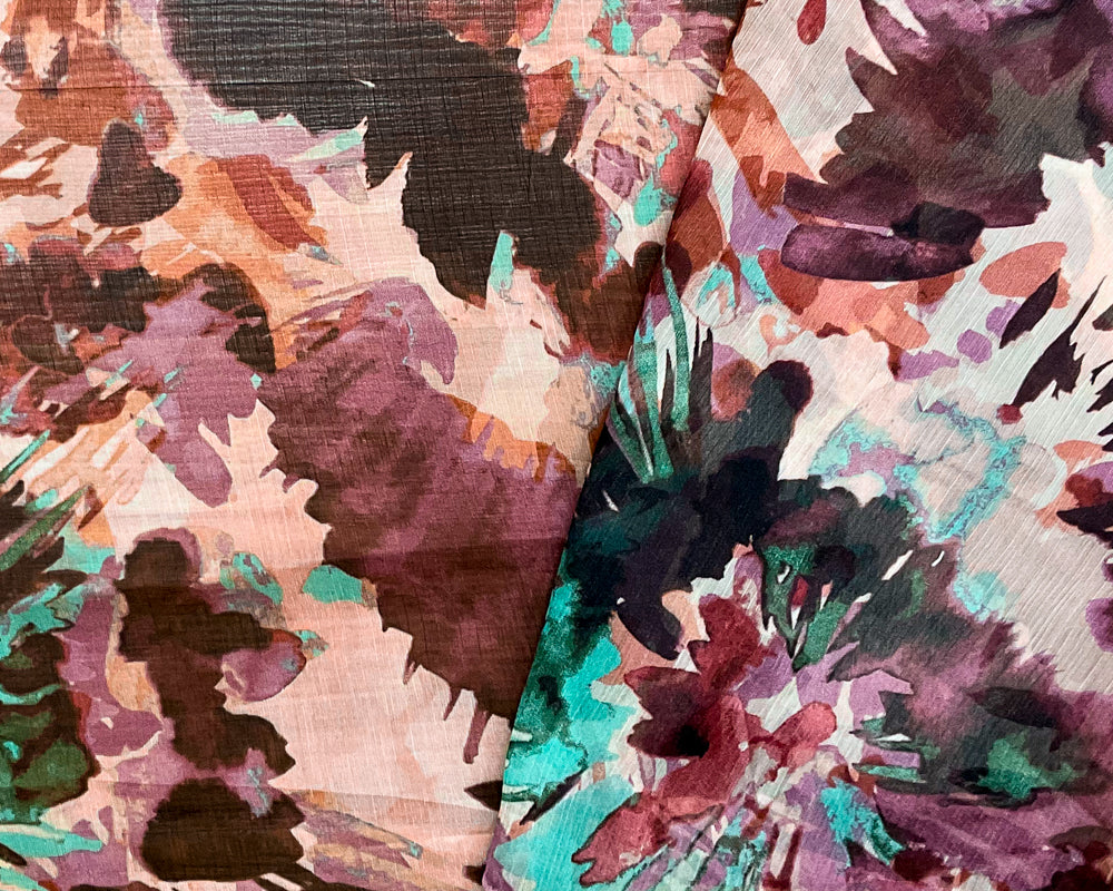 Beige-Purple-Multi Poly Ink Floral Printed Crinkle Yoryu Chiffon Woven Fabric