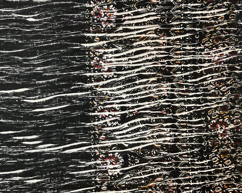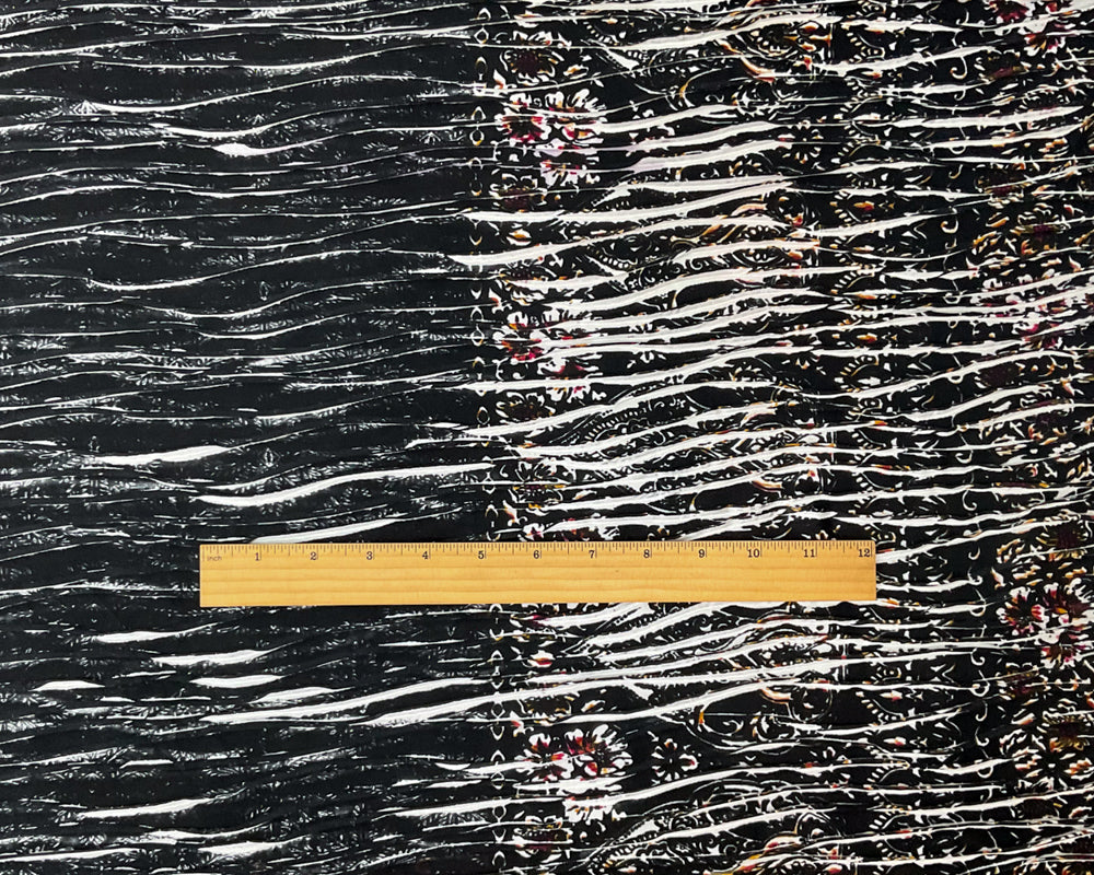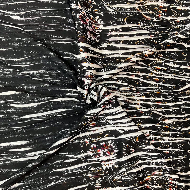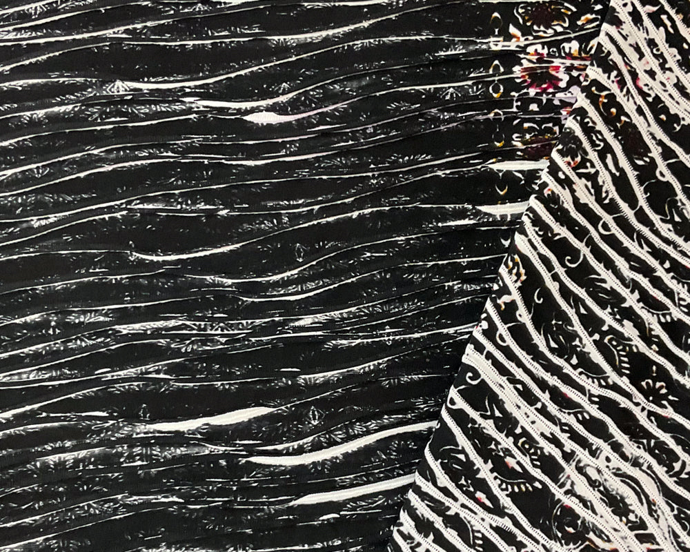 Black-Multi Poly Baroque Border Printed Knife Pleat Knit Fabric