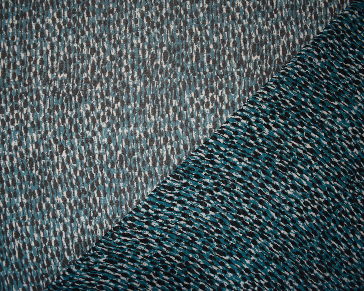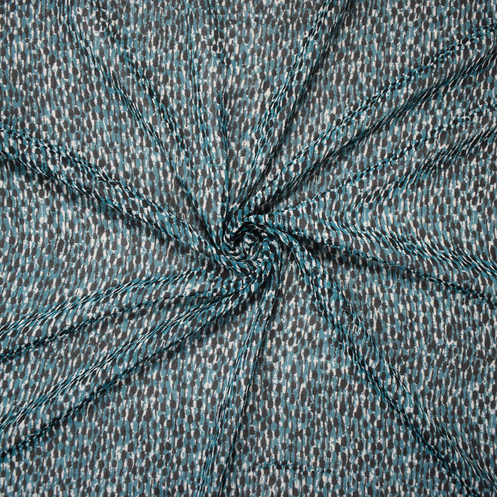 Blue-Black-White Poly Abstract Dot Printed Chiffon Woven Fabric