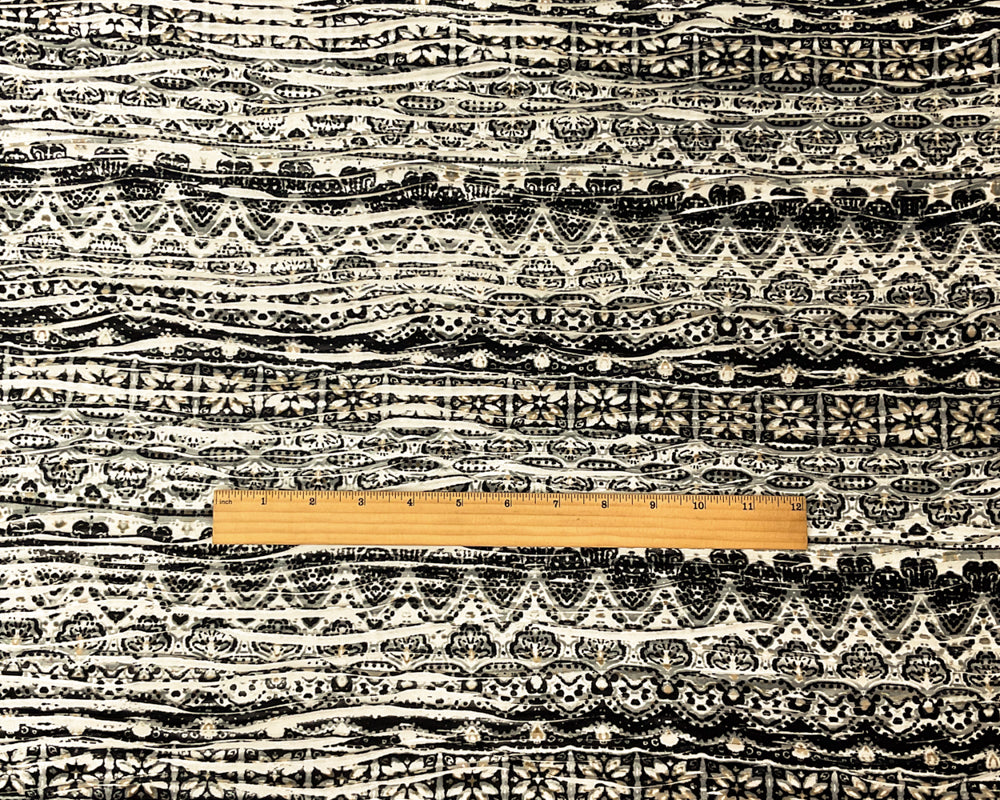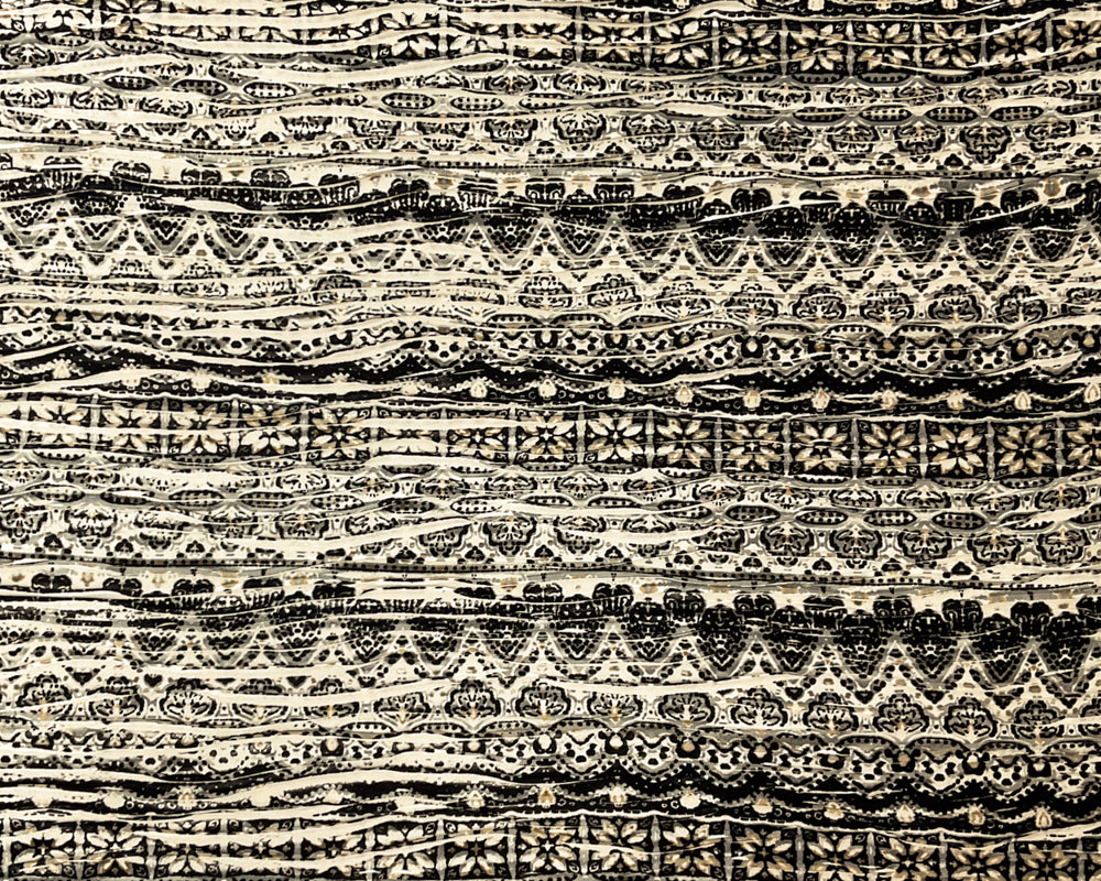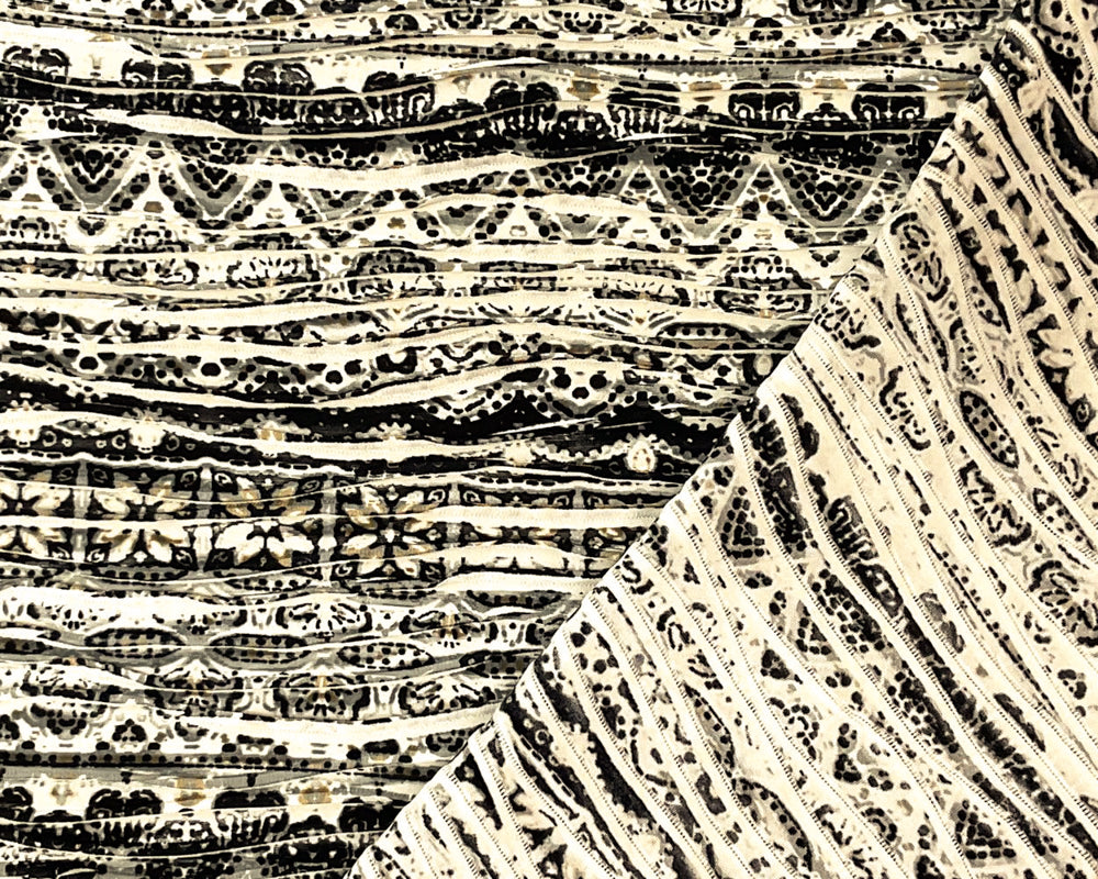 Blue-Gray-Multi Poly Boho Printed Knife Pleat Knit Fabric
