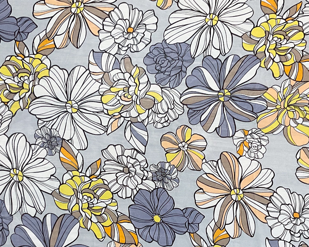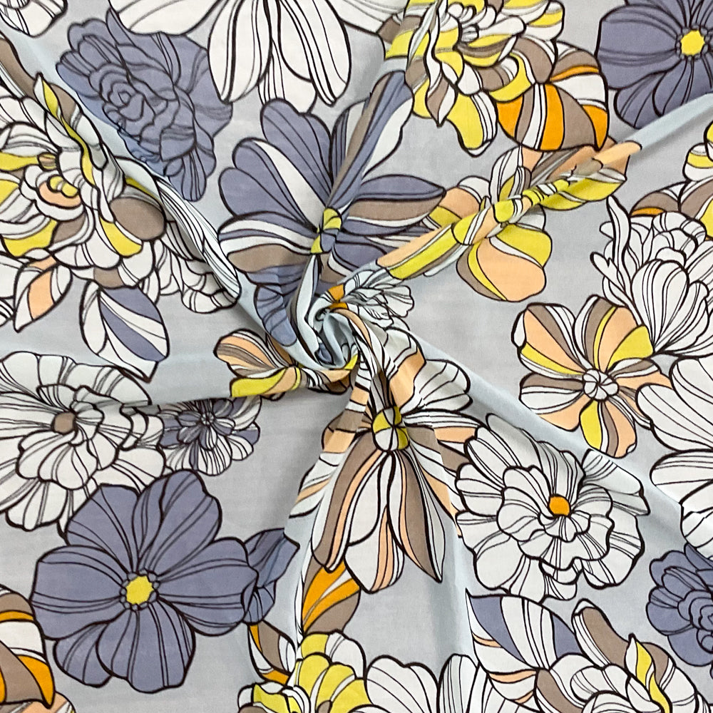 Gray-Purple-Multi Poly Floral Printed Chiffon Woven Fabric