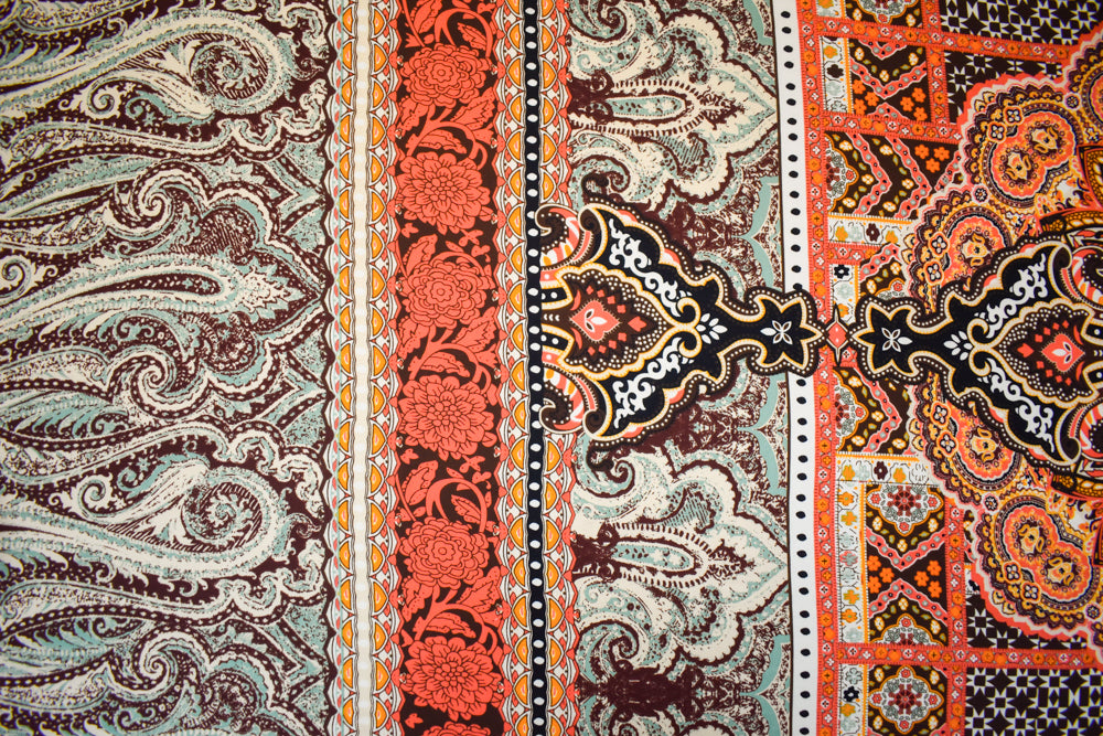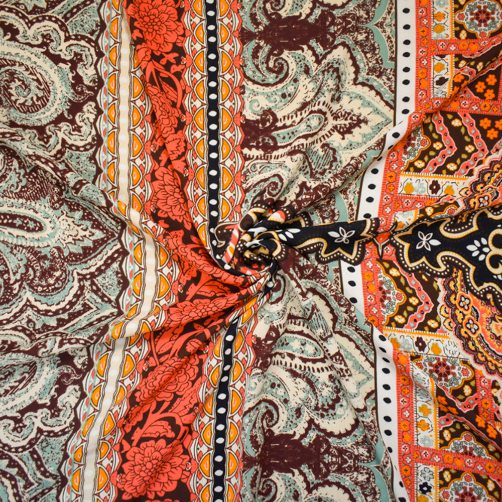 Red-Beige-Multi Poly Paisely Floral Multi Printed Georgette Woven Fabric