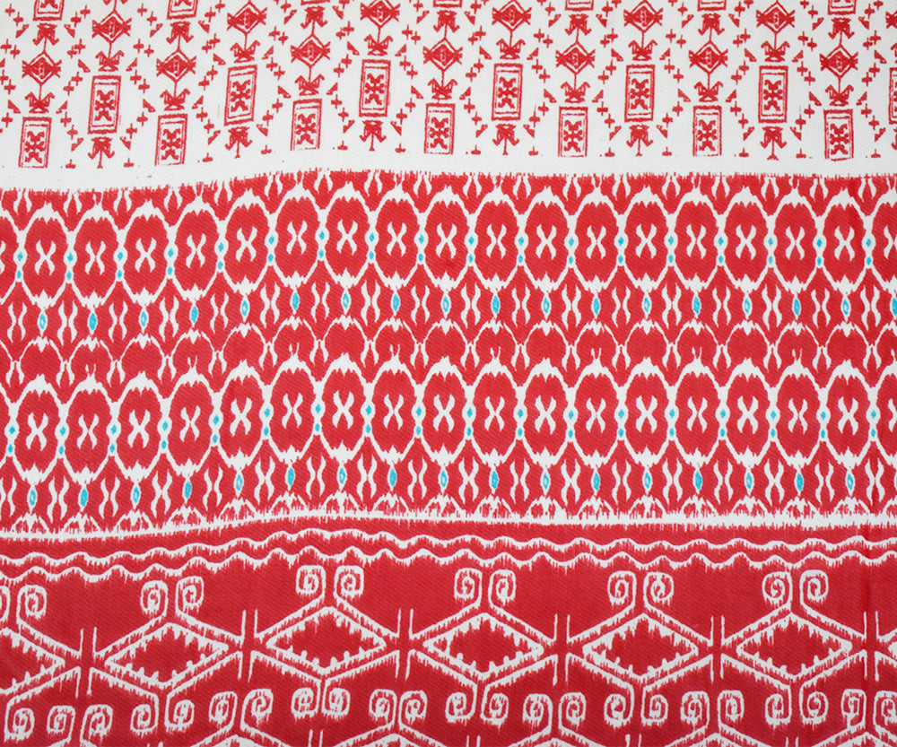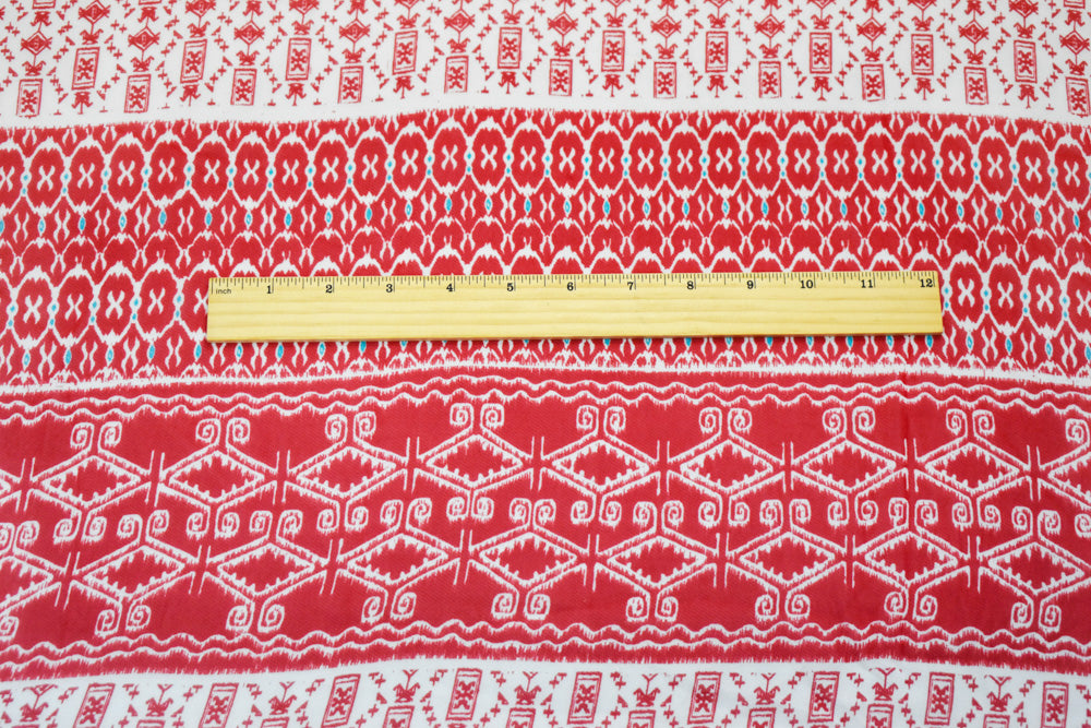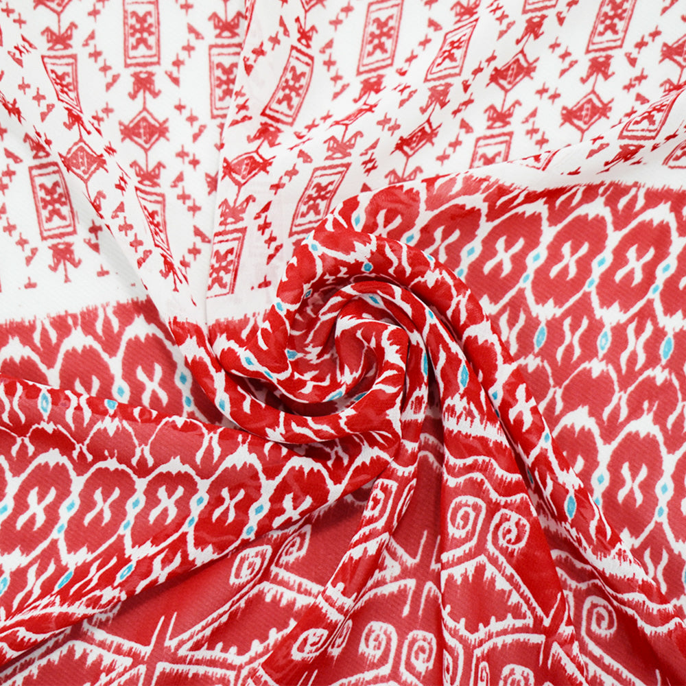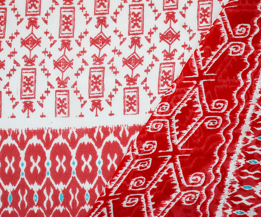 Red-Ivory-Turquoise Poly Aztec Border Printed Chiffon Woven Fabric