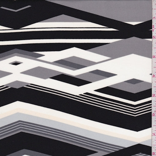 Black/Sterling/Chalk Chevron Stripe Crepe Georgette Fabric