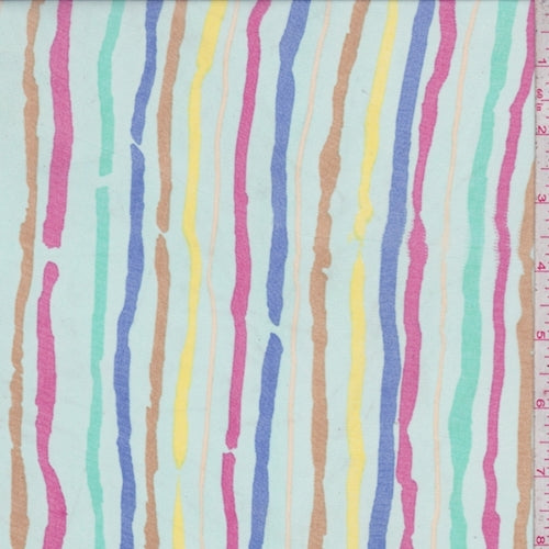 Ice Blue Multi Wavy Stripe Georgette Fabric