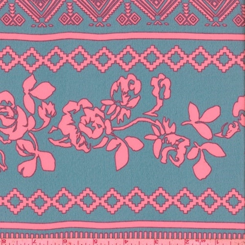 Jade Blue/Neon Pink Floral Stripe Georgette Fabric