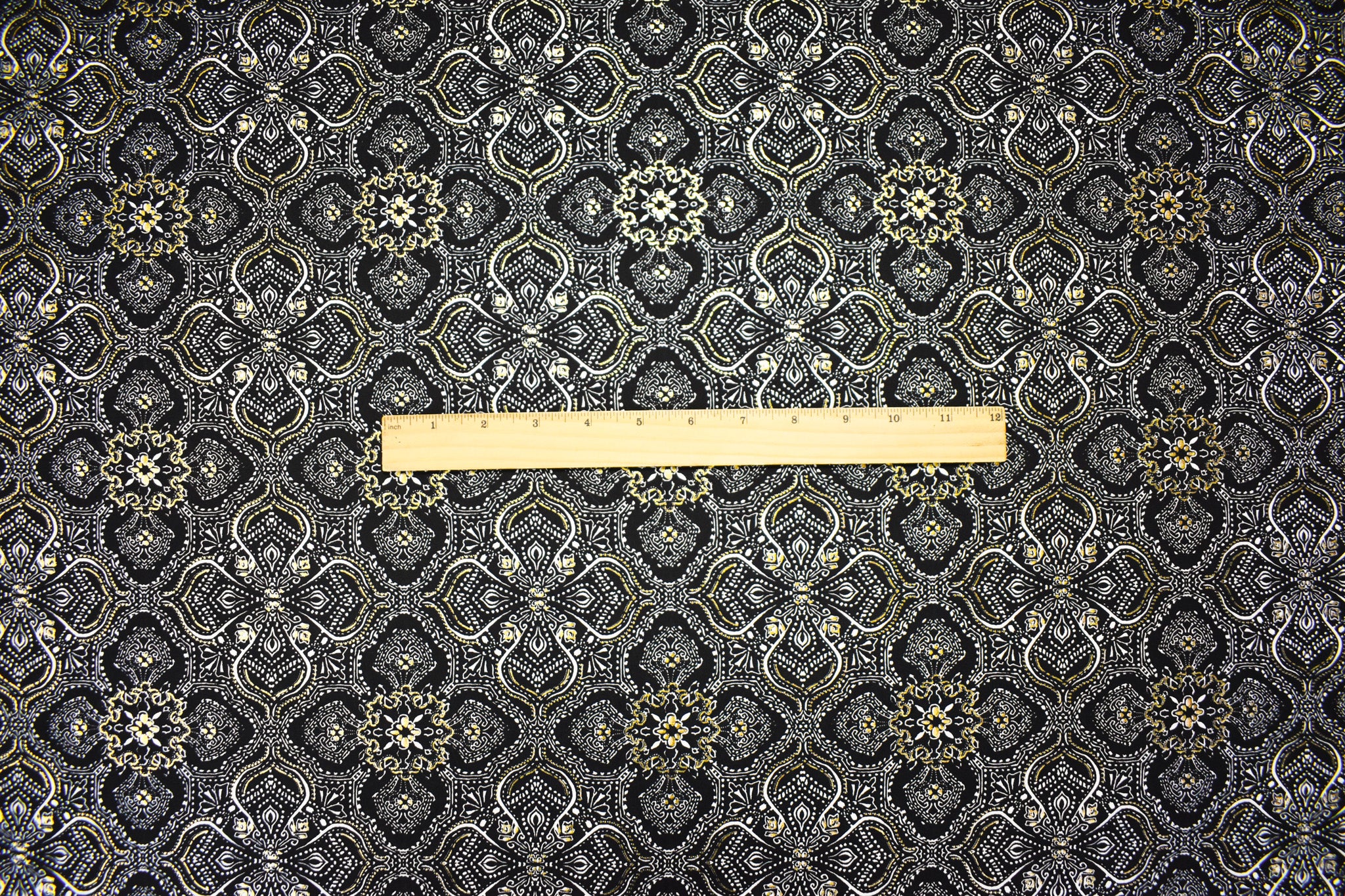Black-Multi Poly Stretch Baroque Foil Printed ITY Knit Fabric