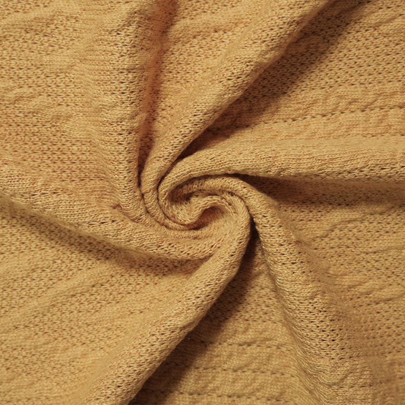 -100% polyester cable knit sweater knit fabric with rope-like and chevron designs in a vertical striped arrangement