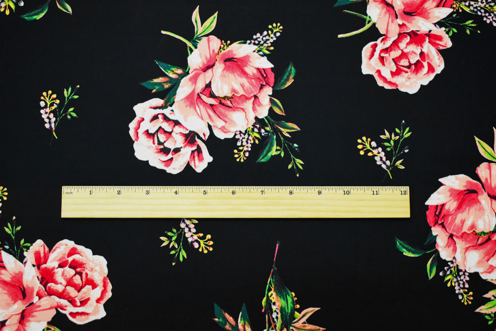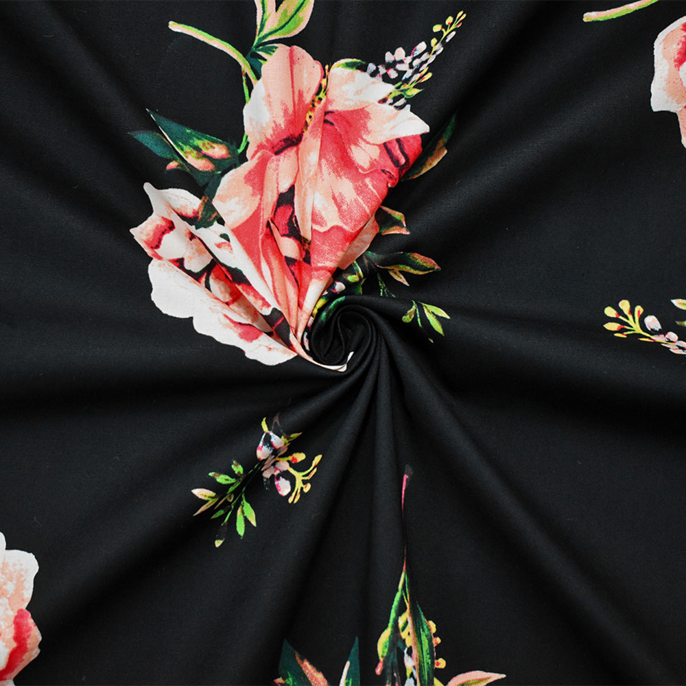 Black-Pink-Multi Cotton Floral Printed Stretch Spandex Poplin Woven Fabric