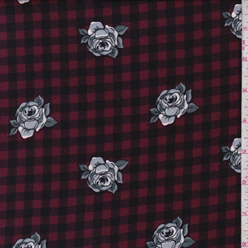 Black/Mulberry/Grey Check Floral Double Brushed Jersey Knit Fabric