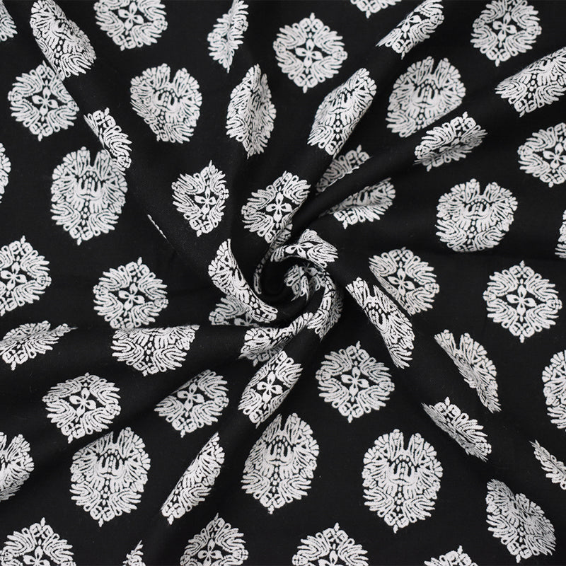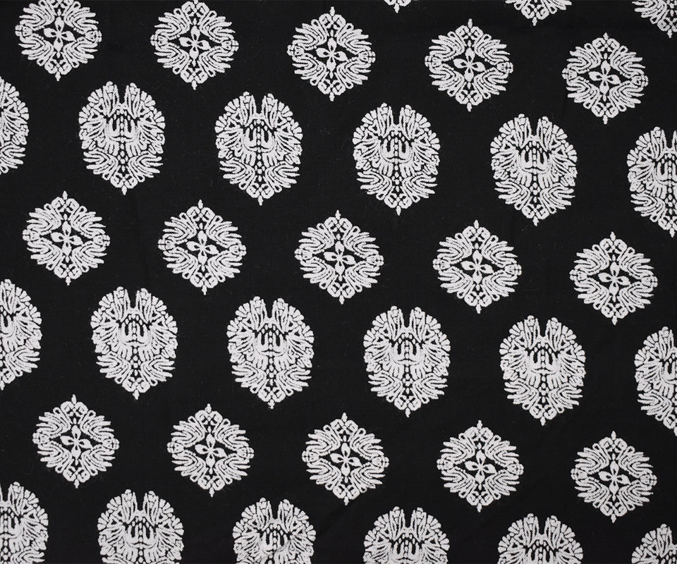 Black Rayon Famous Designer Crest Print Challis Woven Fabric