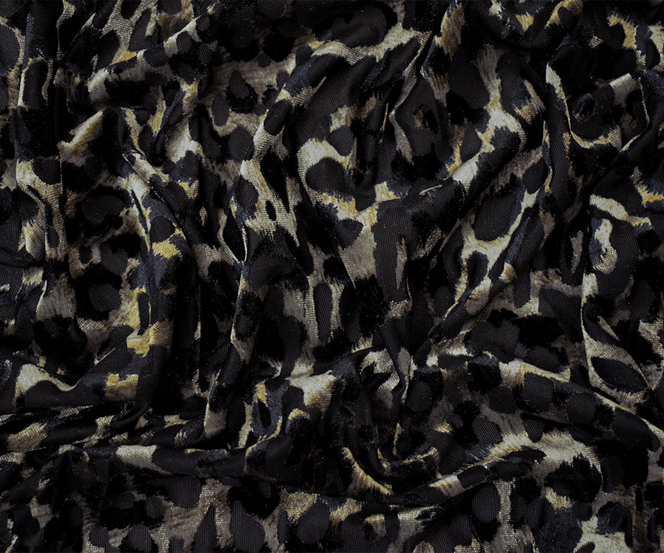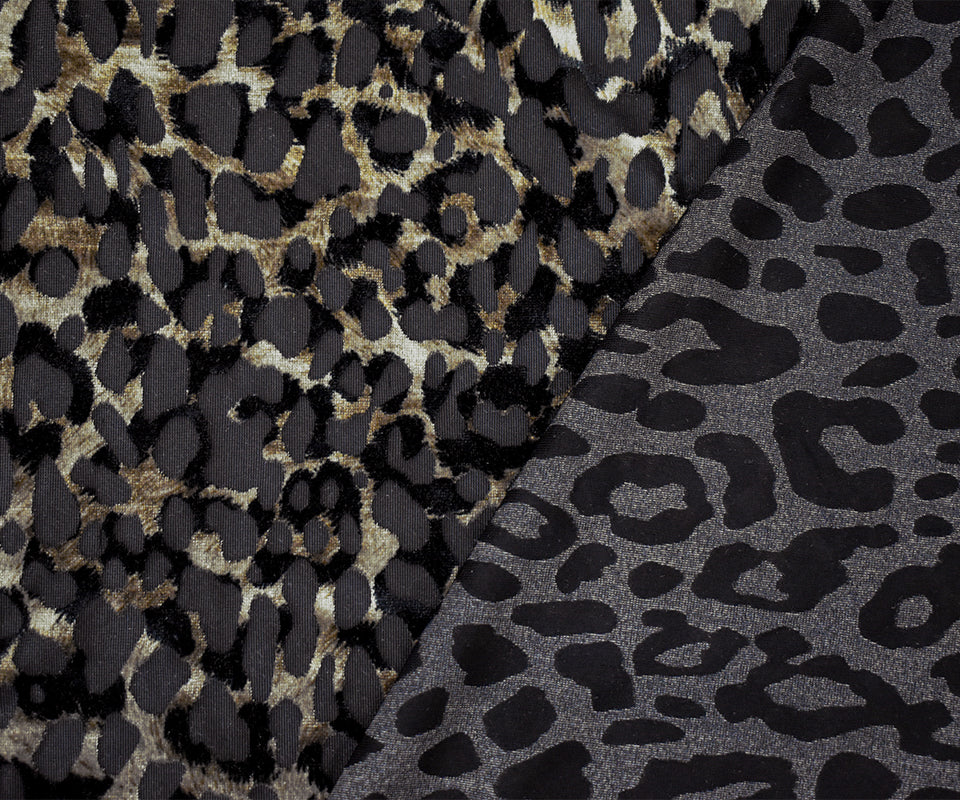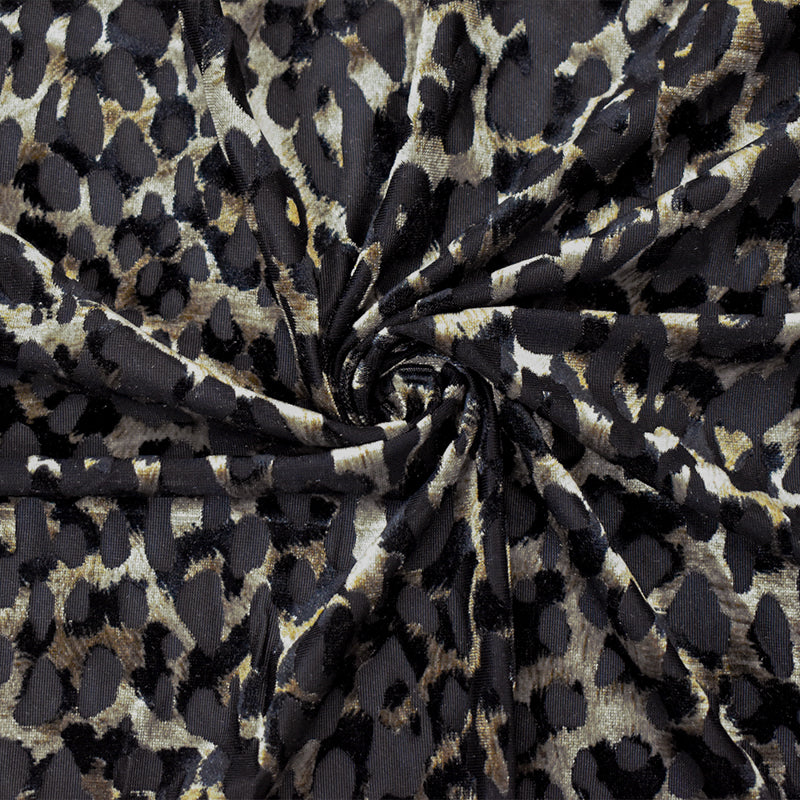 -Famous designer, poly blend stretch spandex burnout velvet knit fabric with a cheetah pattern