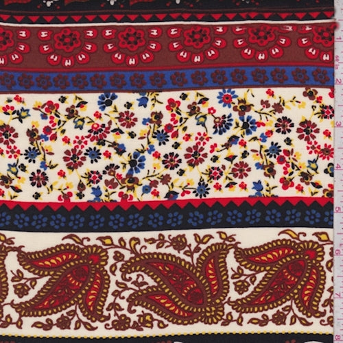 Cream/Red/Violet Moroccan Stripe Rayon Challis Fabric