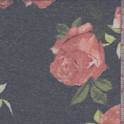Dark Ink Blue Rose Slub Jersey Knit Fabric