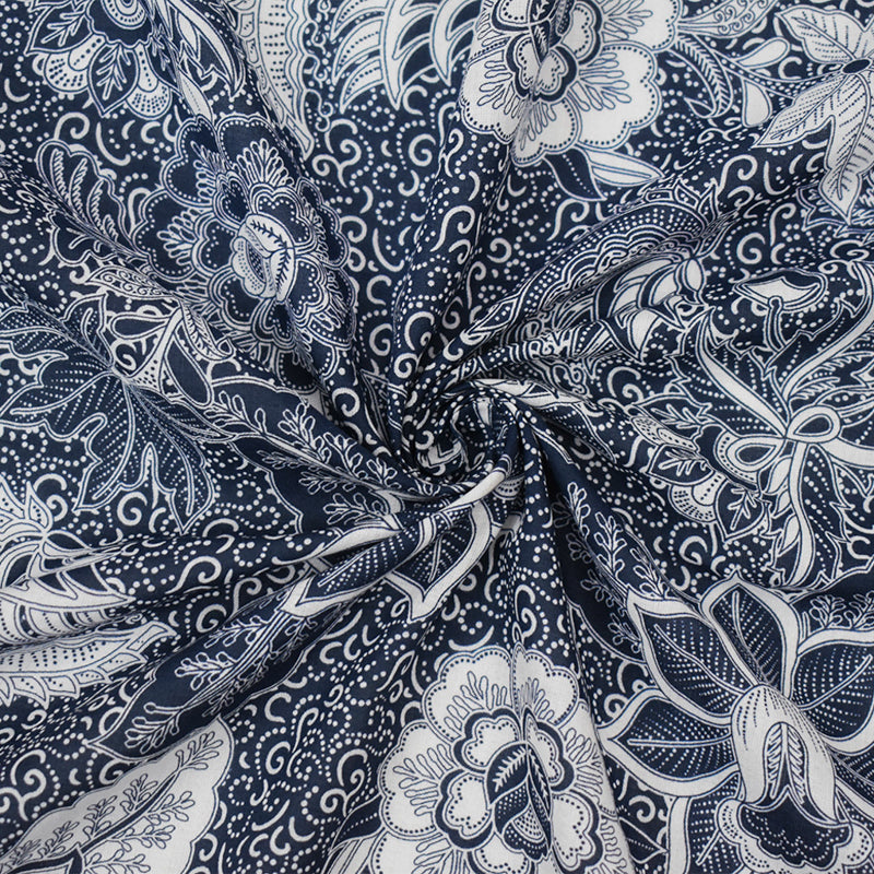 Indigo-White Famous Designer Floral Printed Lawn Woven Fabric