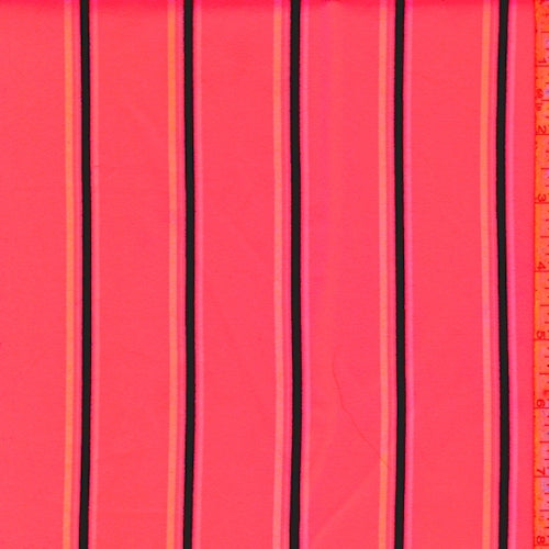 Neon Pink Stripe Double Brushed Jersey Knit Fabric