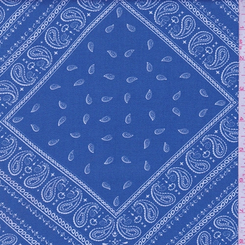 Ocean Blue Paisley Tile Twill Challis Fabric