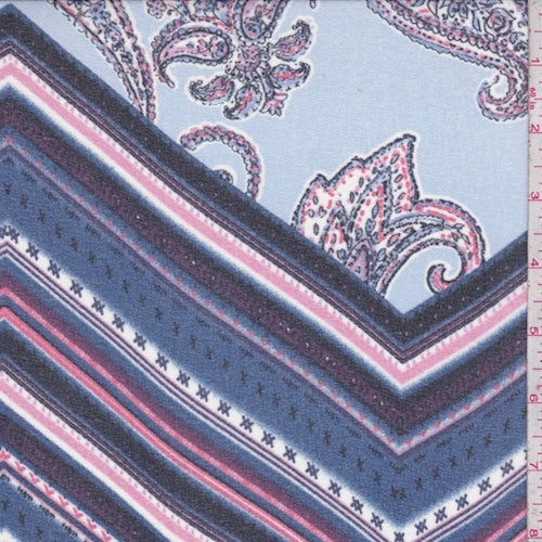 Periwinkle/Navy Paisley Chevron Crepe Georgette Fabric