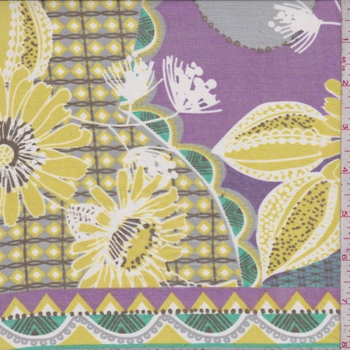 Purple/Yellow/Grey Floral Silk Chiffon Fabric