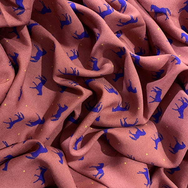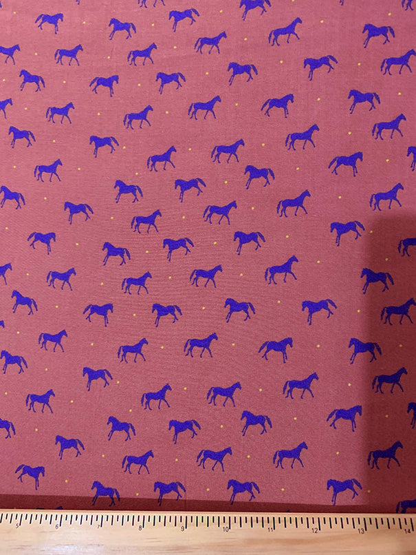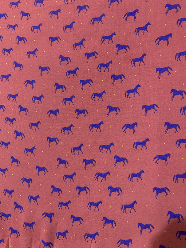 1 1/2 YD PC-Rust Horse Print Rayon Challis Fabric