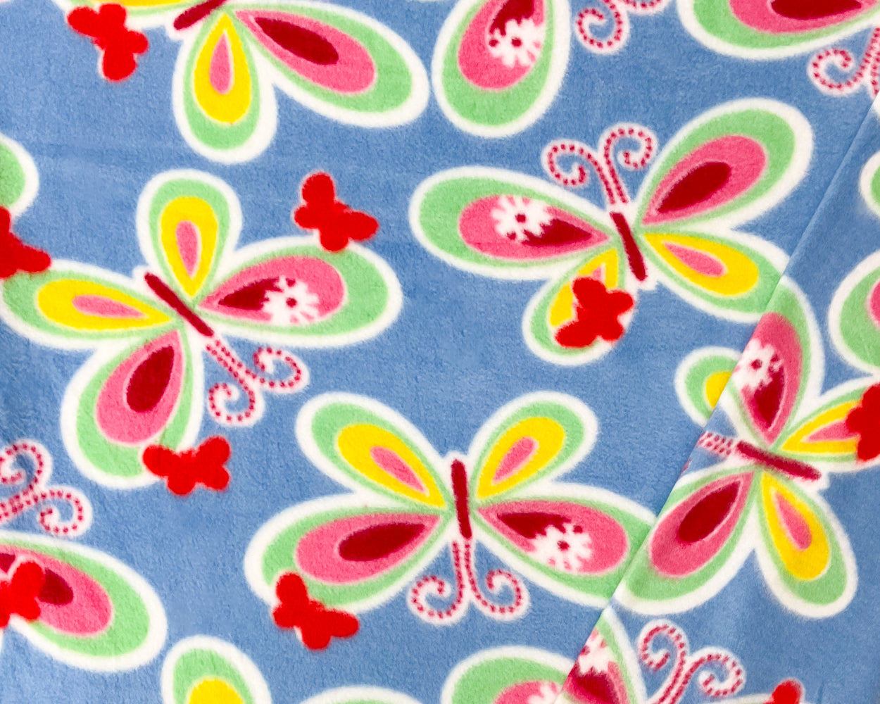 Blue-Green-Multi Polyester Butterfly Printed Polar Fleece Knit Fabric
