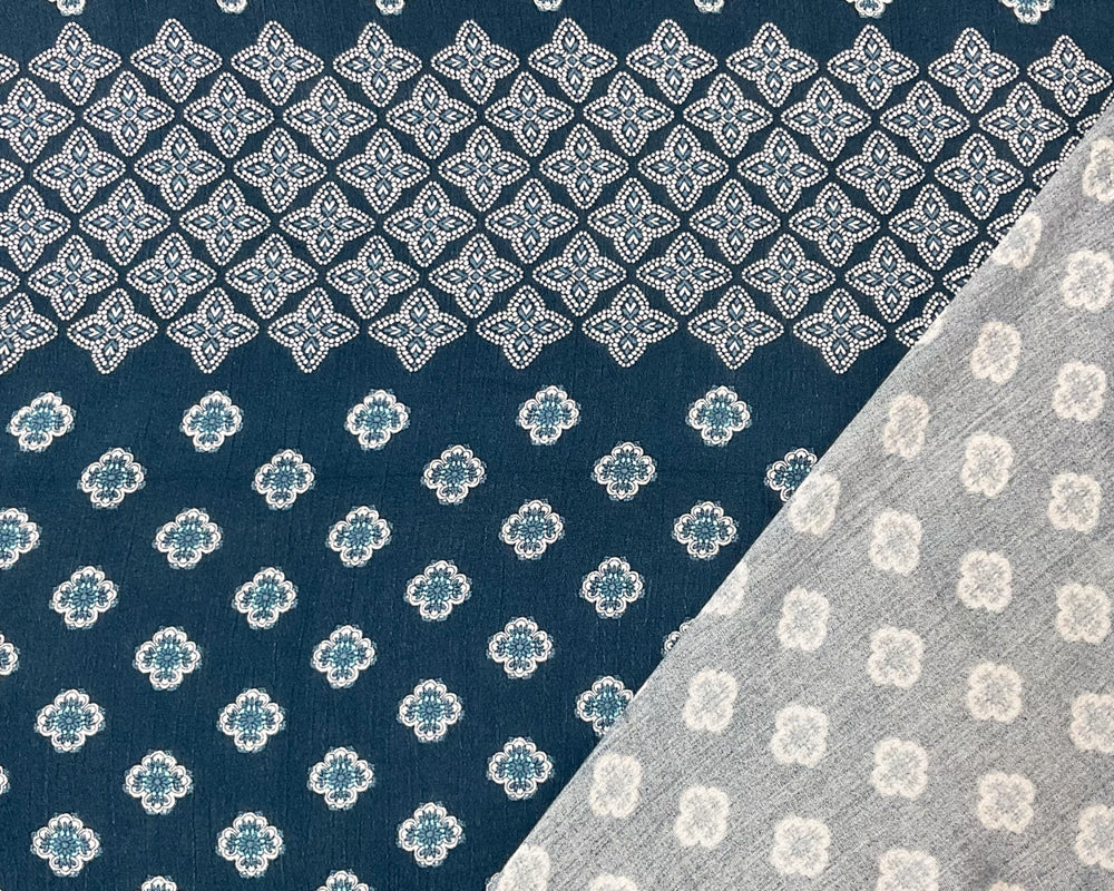 Blue-White Cotton Floral Border Printed Gauze Woven Fabric