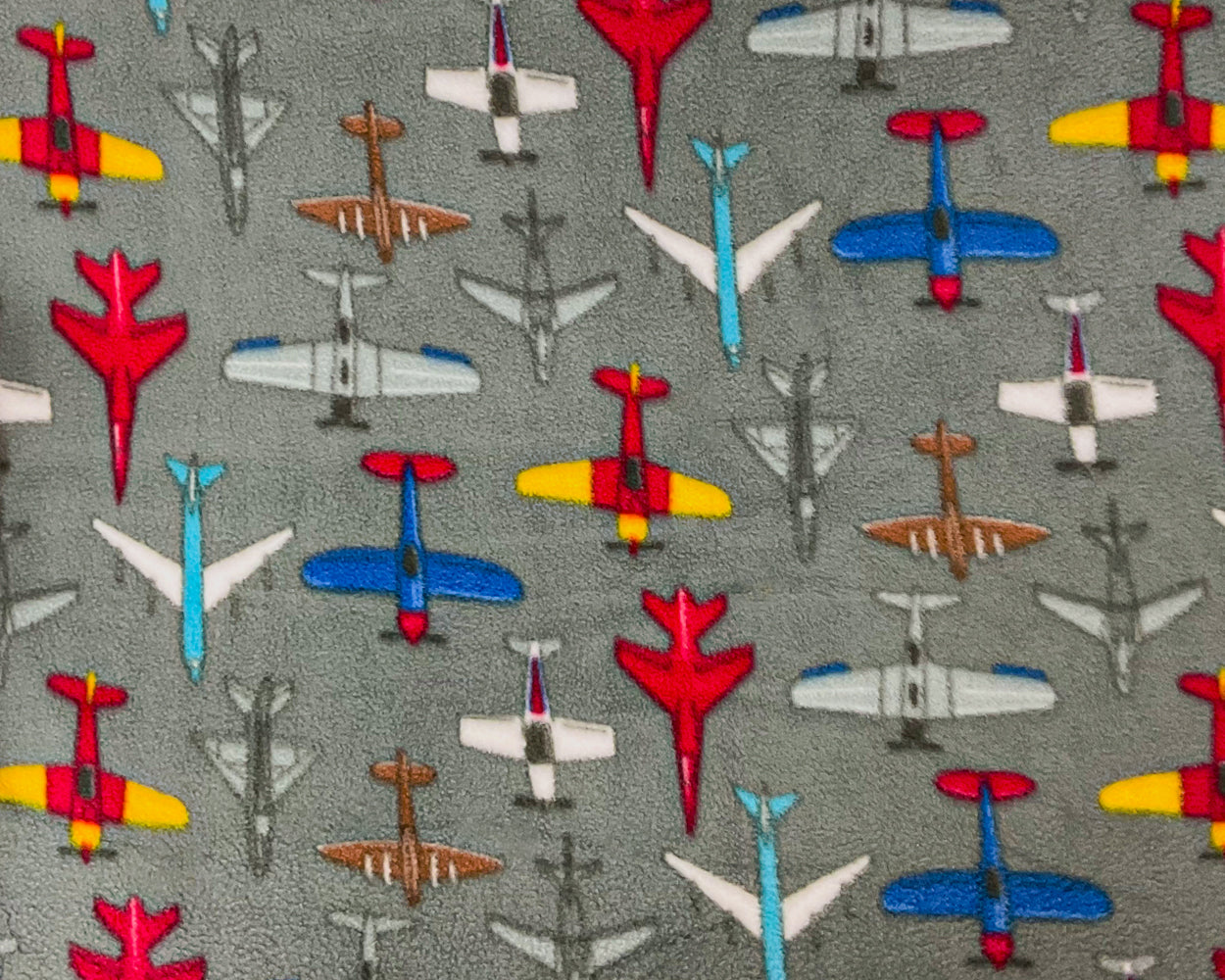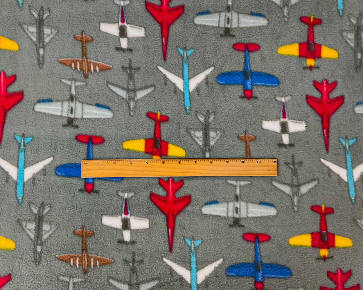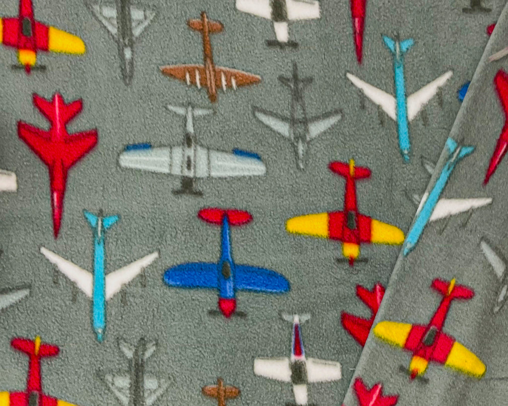 Gray-Multi Polyester Airplane Printed Polar Fleece Knit Fabric