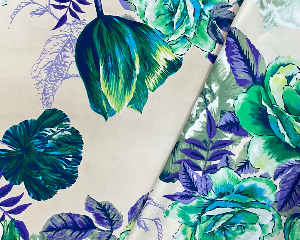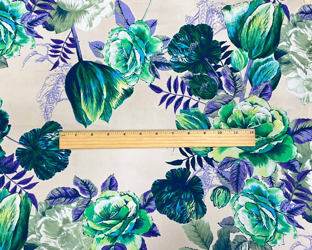 Green-Multi Poly Floral Printed Charmeuse Satin Woven Fabric
