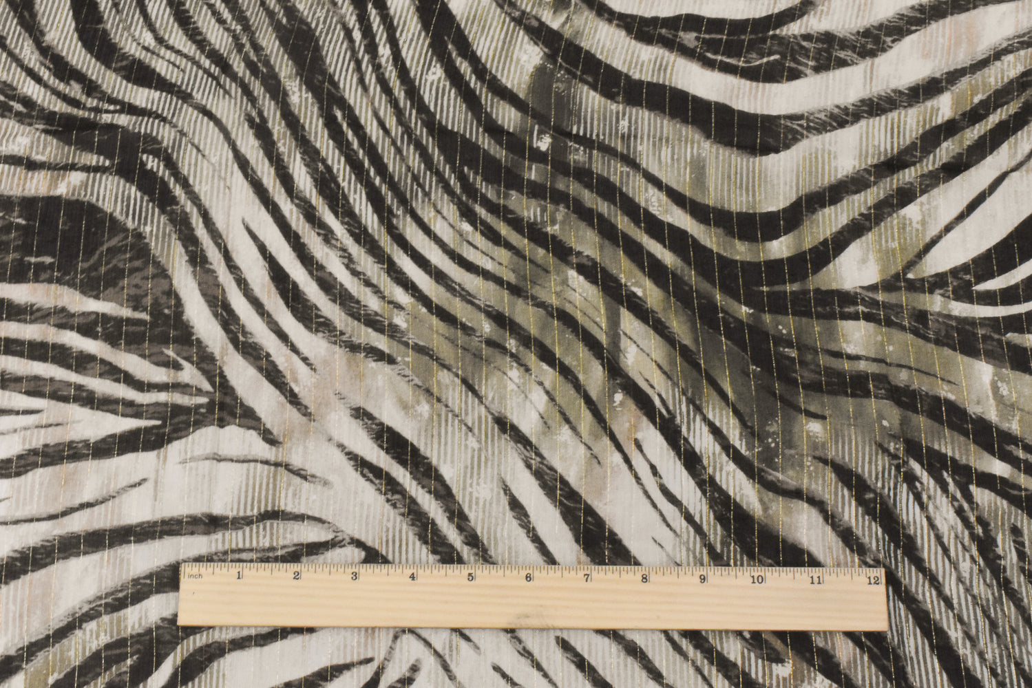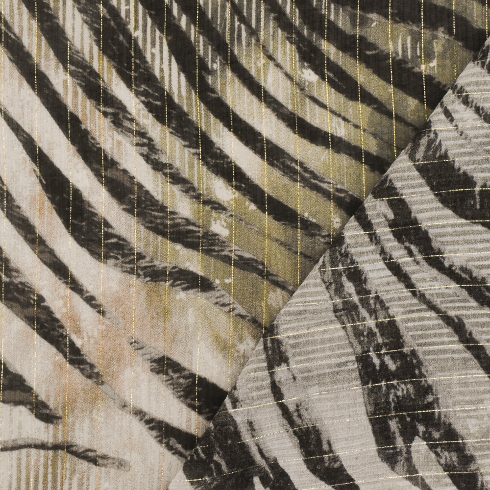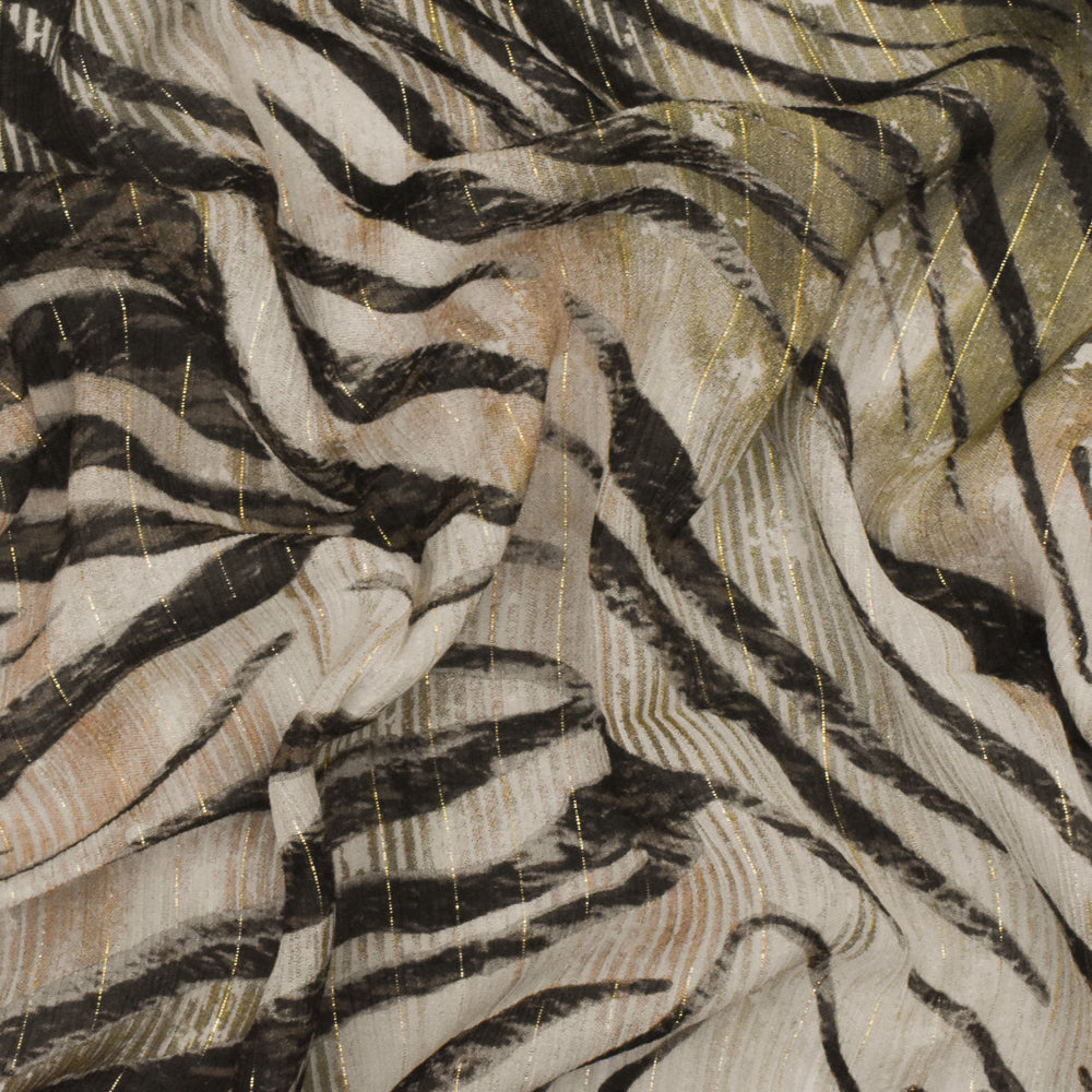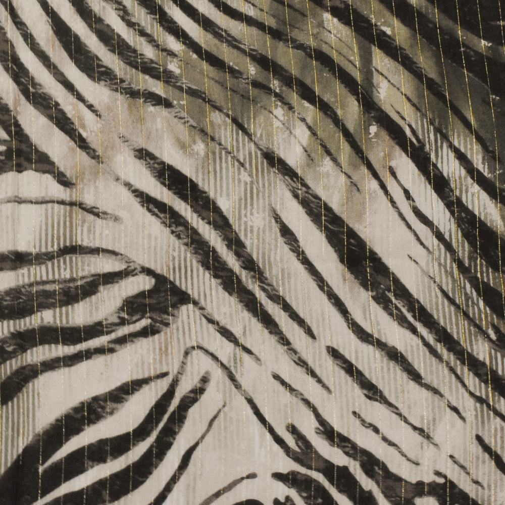 Beige-Gold-Multi Famous Designer Tiger Printed With Stripes Chiffon Fabric