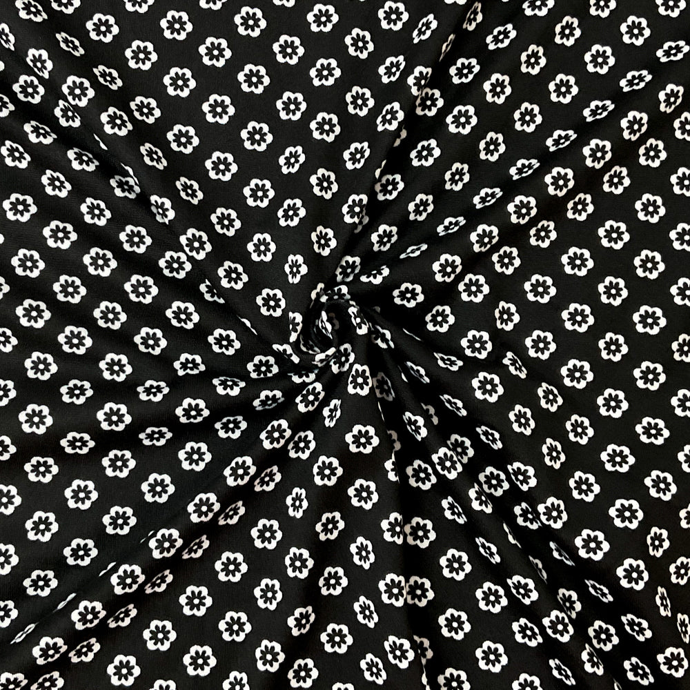 Black-White Poly Spandex Stretch Floral Print DB Jersey Knit Fabric