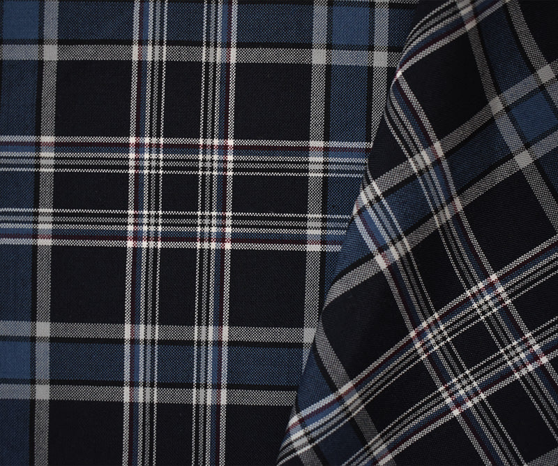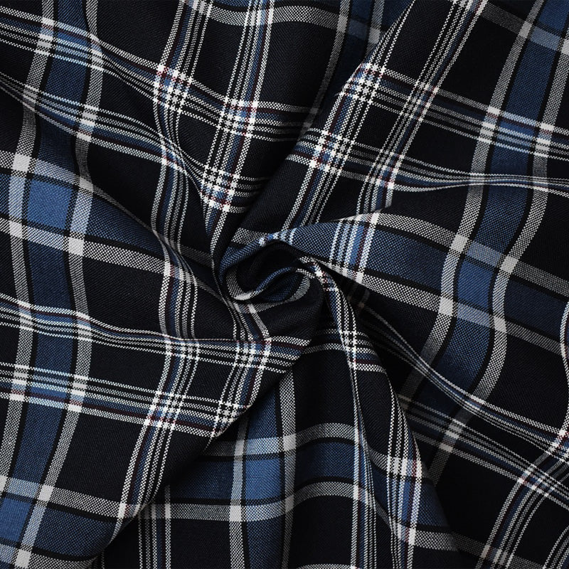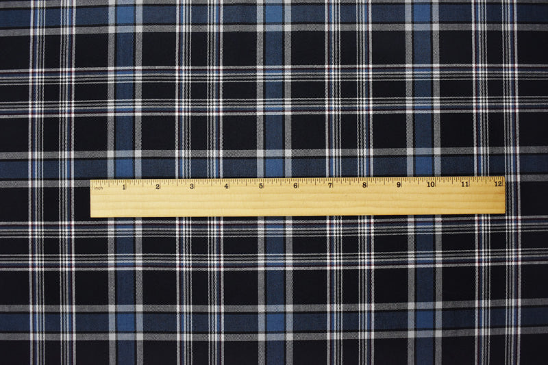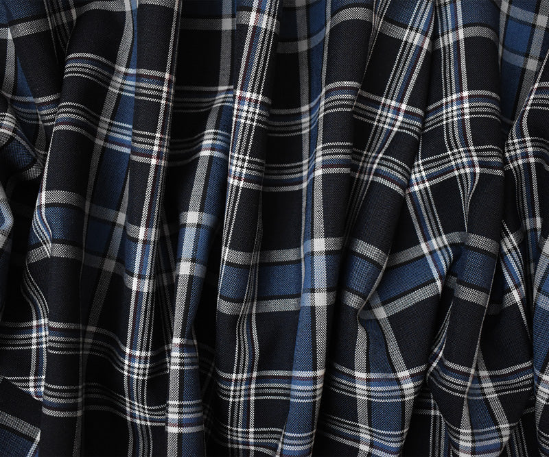 Blue-Multi Poly Wool Japanese Plaid Twill Woven Suiting Fabric