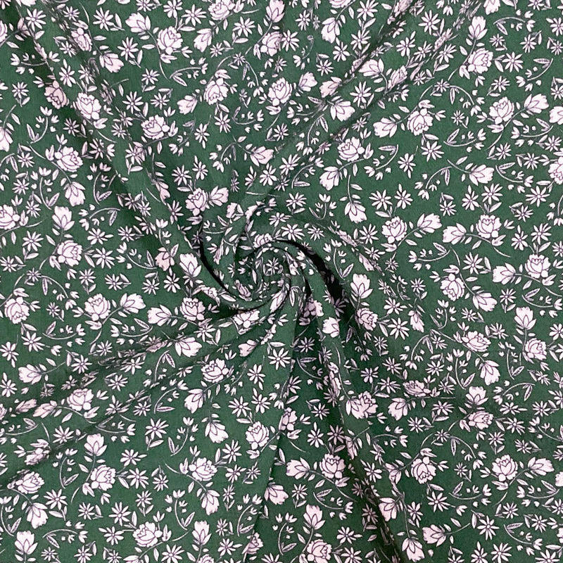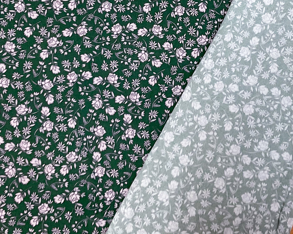 Green-Gray Rayon Floral Printed Crepe Faille Woven Fabric