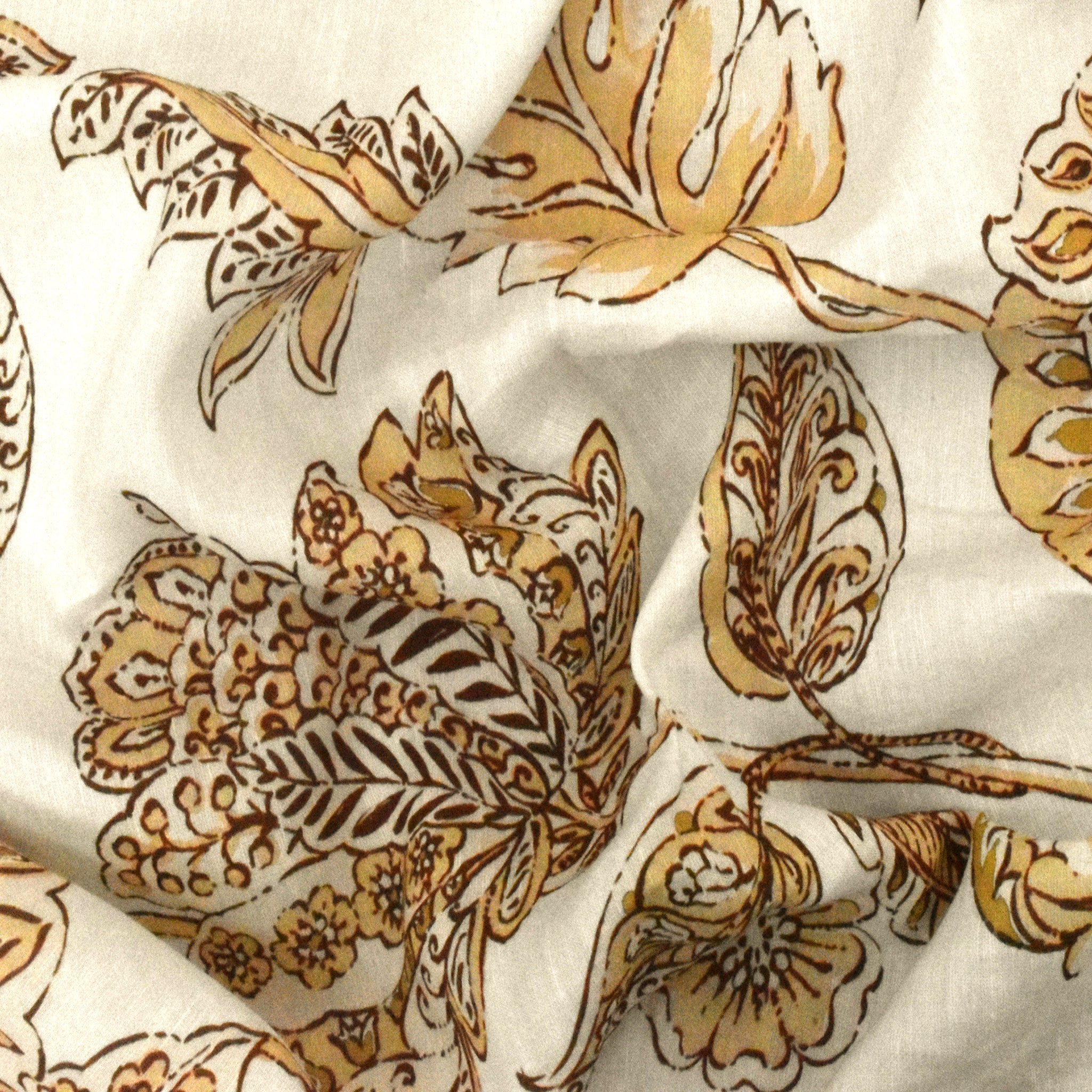 Ivory-Multi Flax Blend Famous Designer Floral Printed Slub Woven Fabric