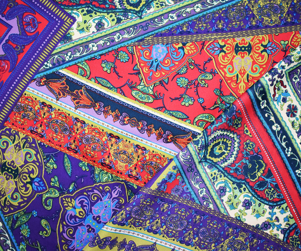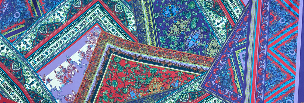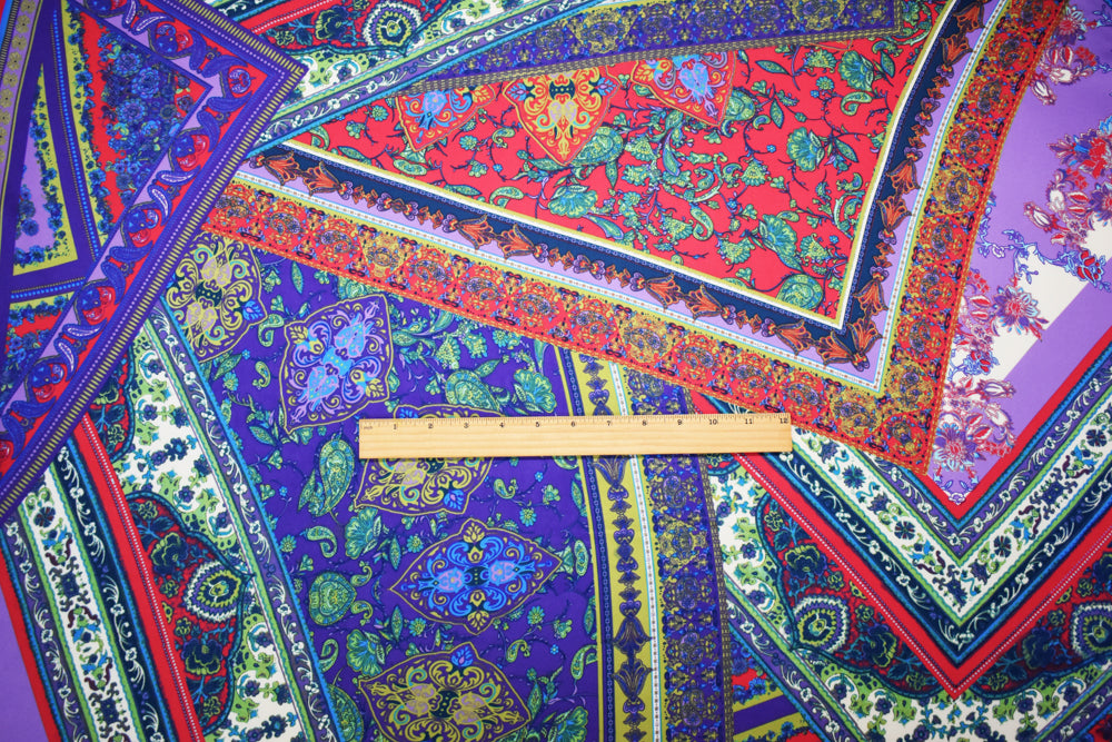 Purple-Red-Multi Polyester Bandana Border Printed Charmeuse Woven Fabric