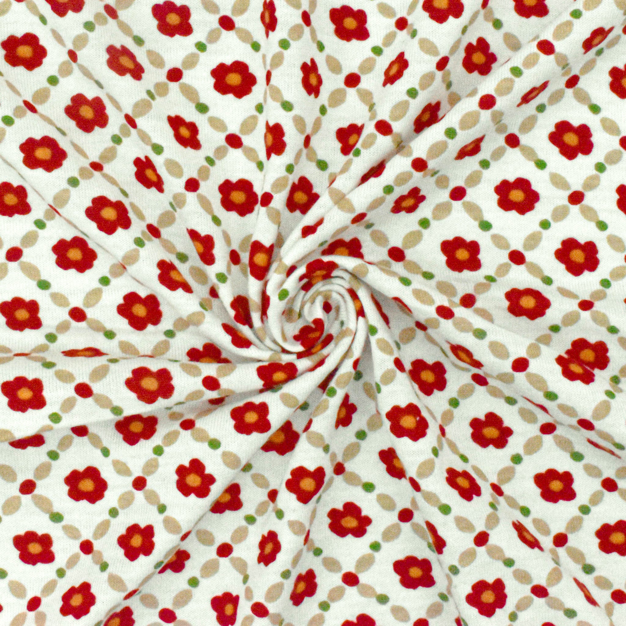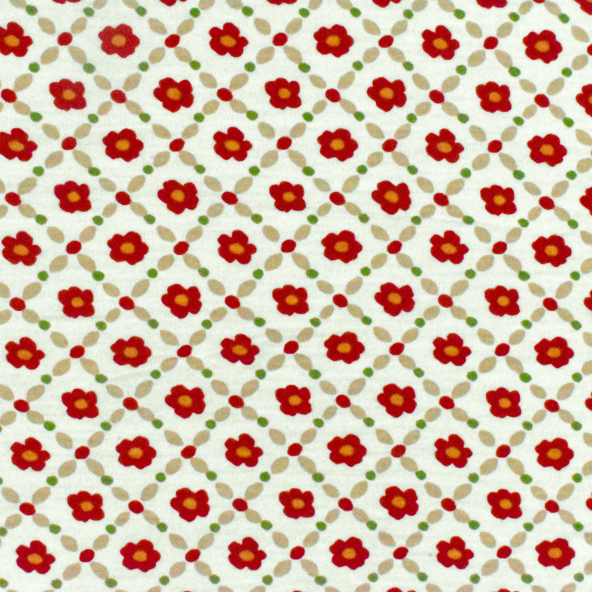 Red-Beige-Multi Floral Trellis Printed Jersey Knit Fabric