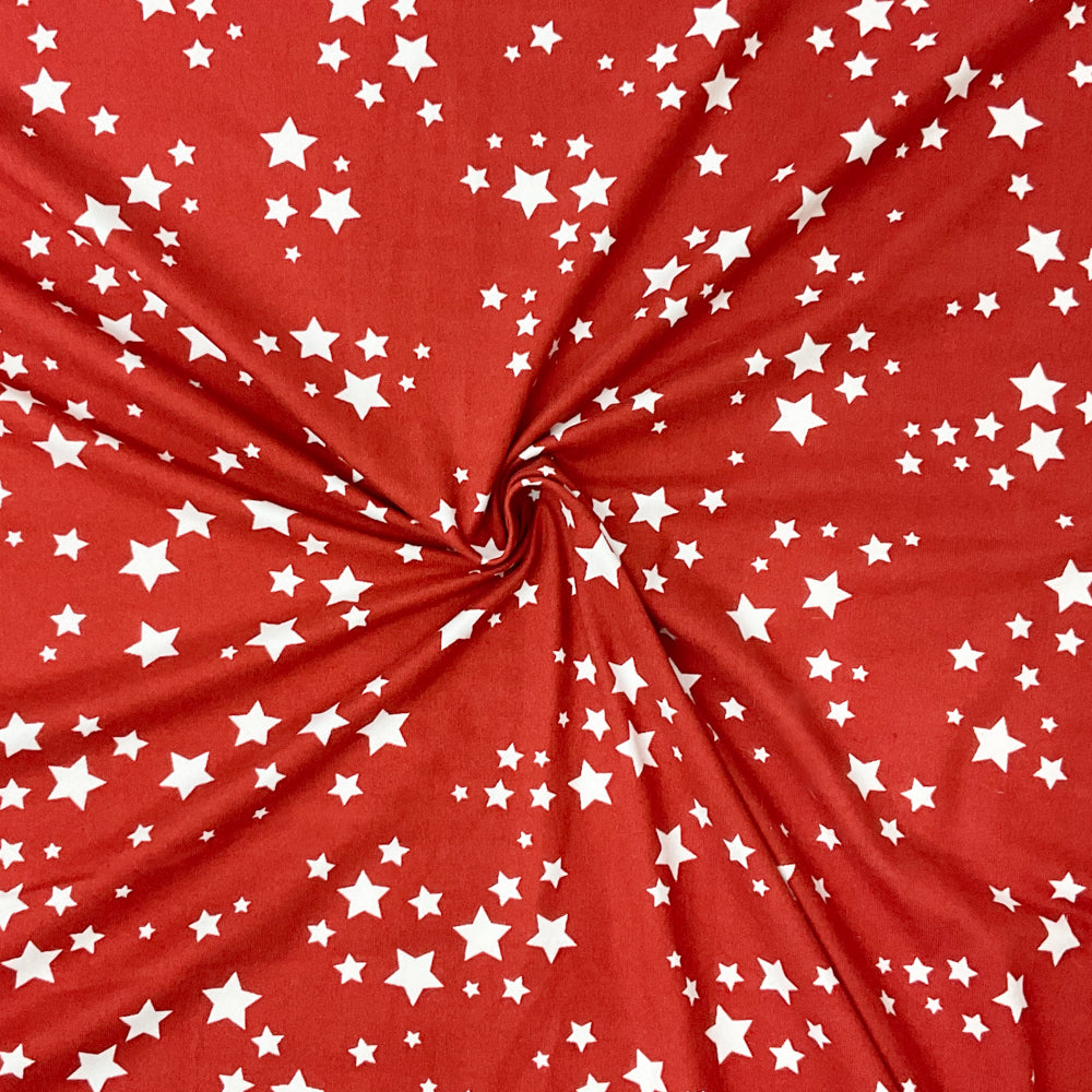 Red-White Poly Stretch Spandex Star Print DB Jersey Knit Fabric