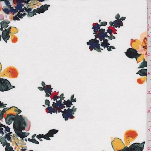 White Multi Floral Spray Double Brushed Jersey Knit Fabric