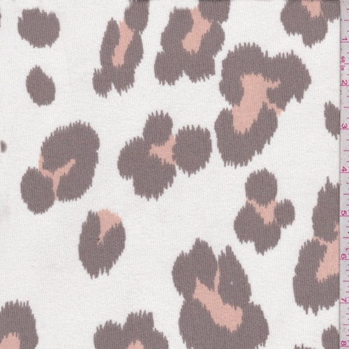 White/Taupe Cheetah Brushed Sweater Jersey Knit Fabric