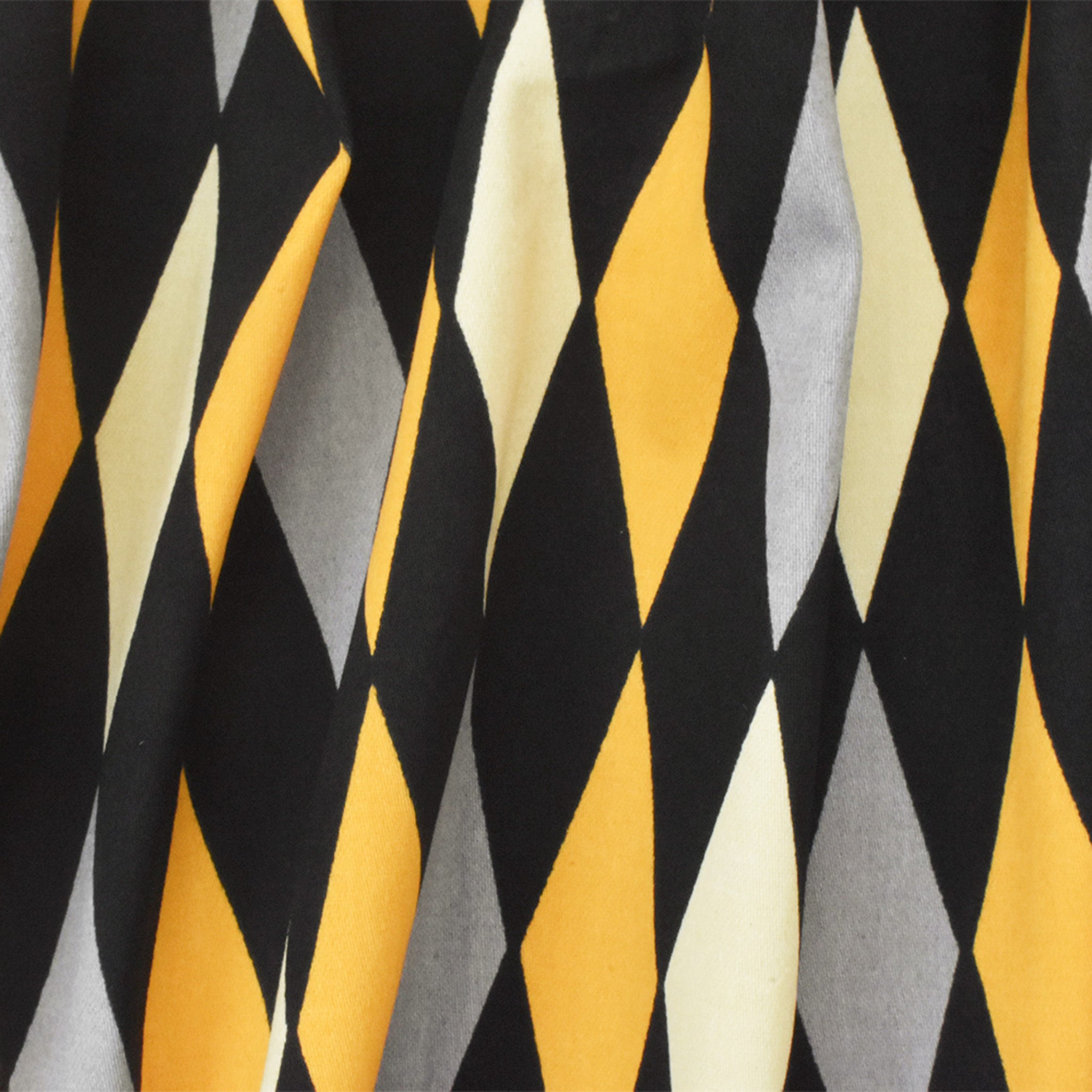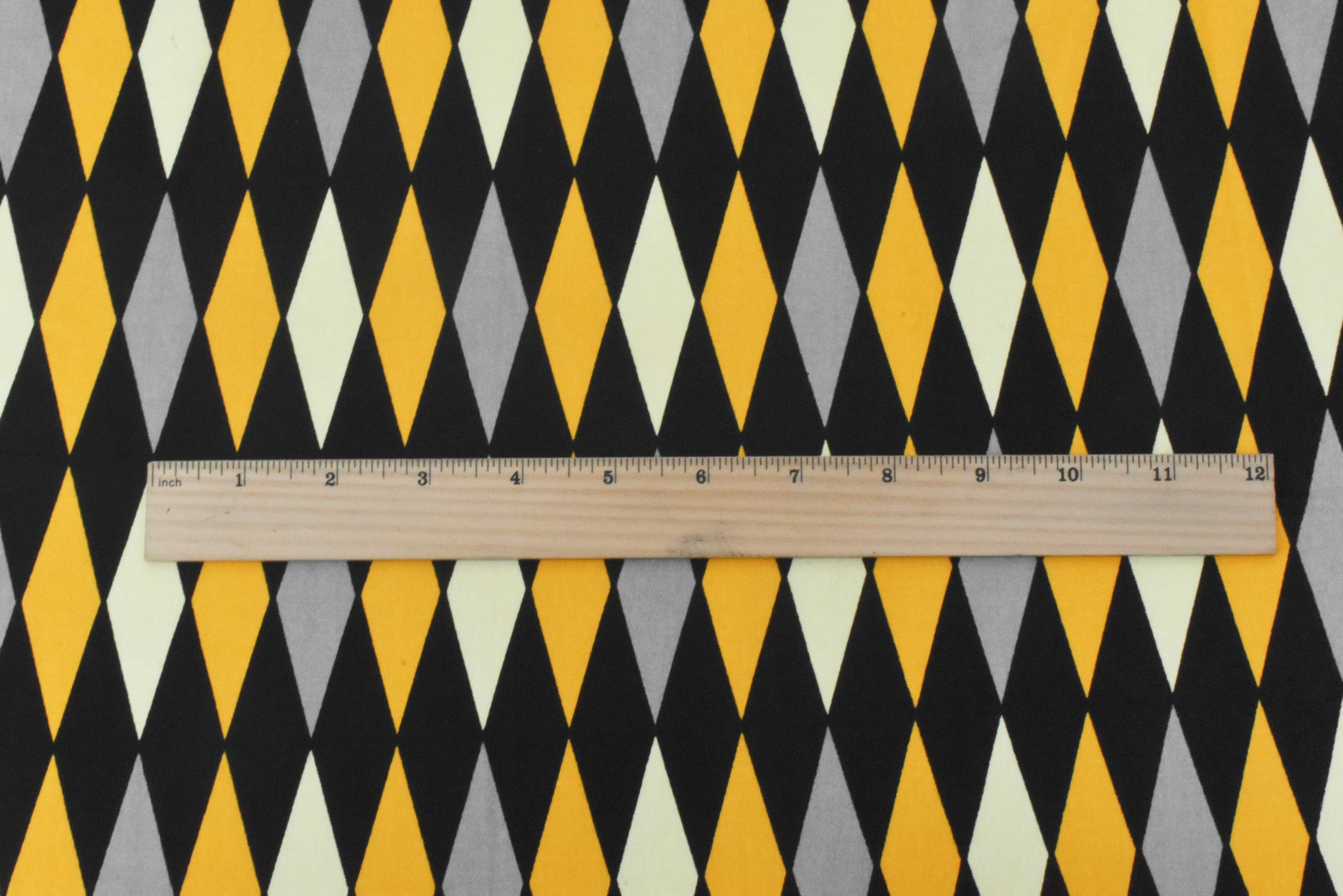 Yellow-Black-Multi Diamond Print Stretch Cotton Spandex Twill Sateen Fabric