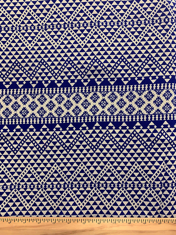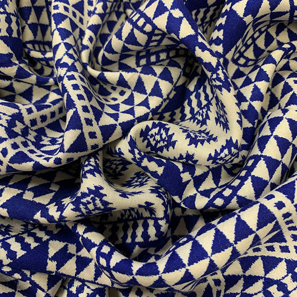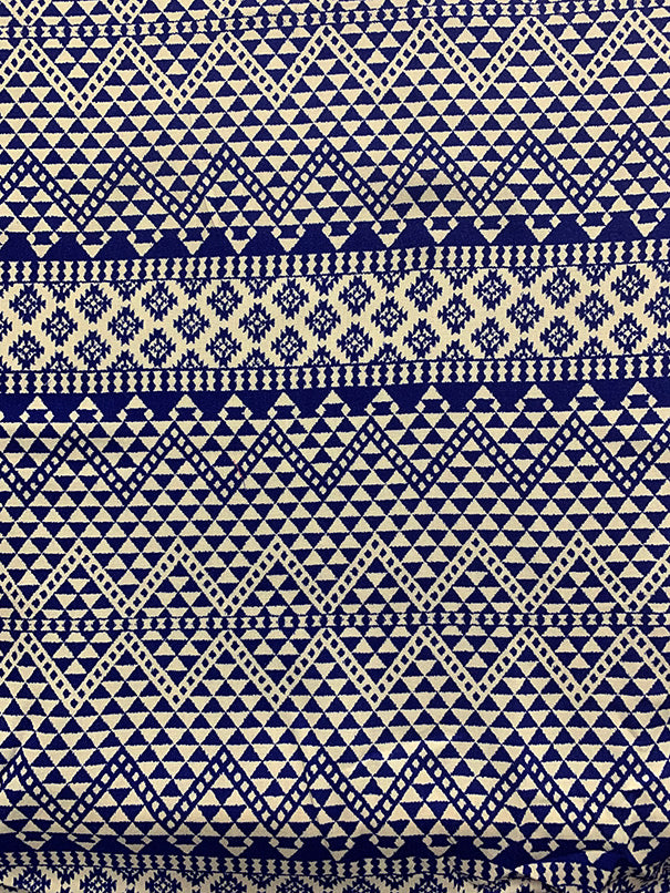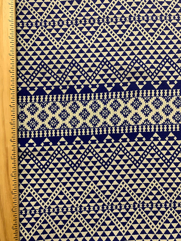 Blue and White Multi Print Stripe Rayon Challis Fabric