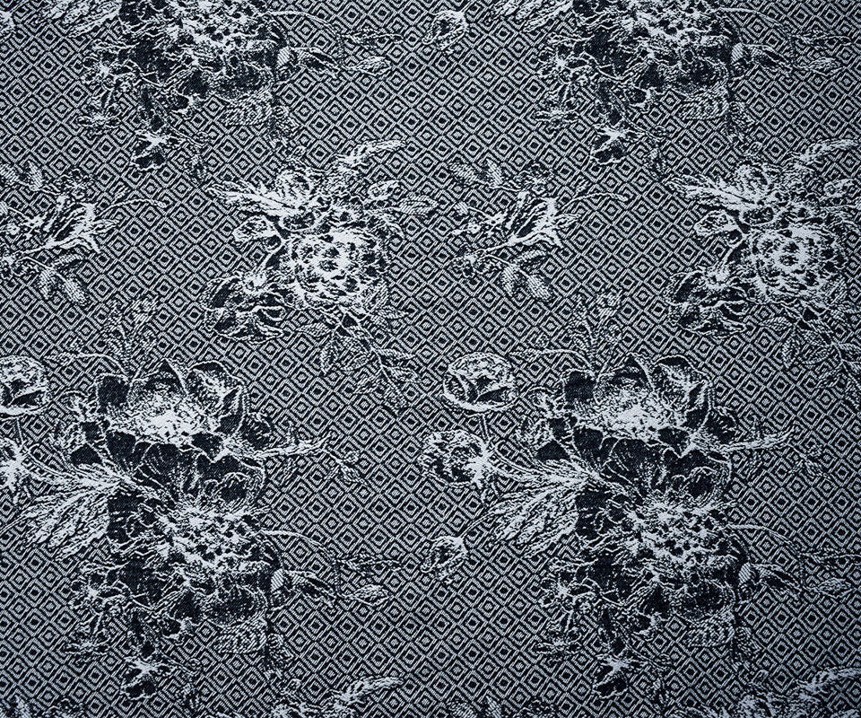 Black-Gray Rayon Blend Floral Bengaline Jacquard Woven Fabric