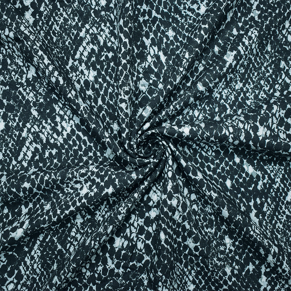 Black-Gray Rayon Reptile Skin Printed Twill Woven Fabric