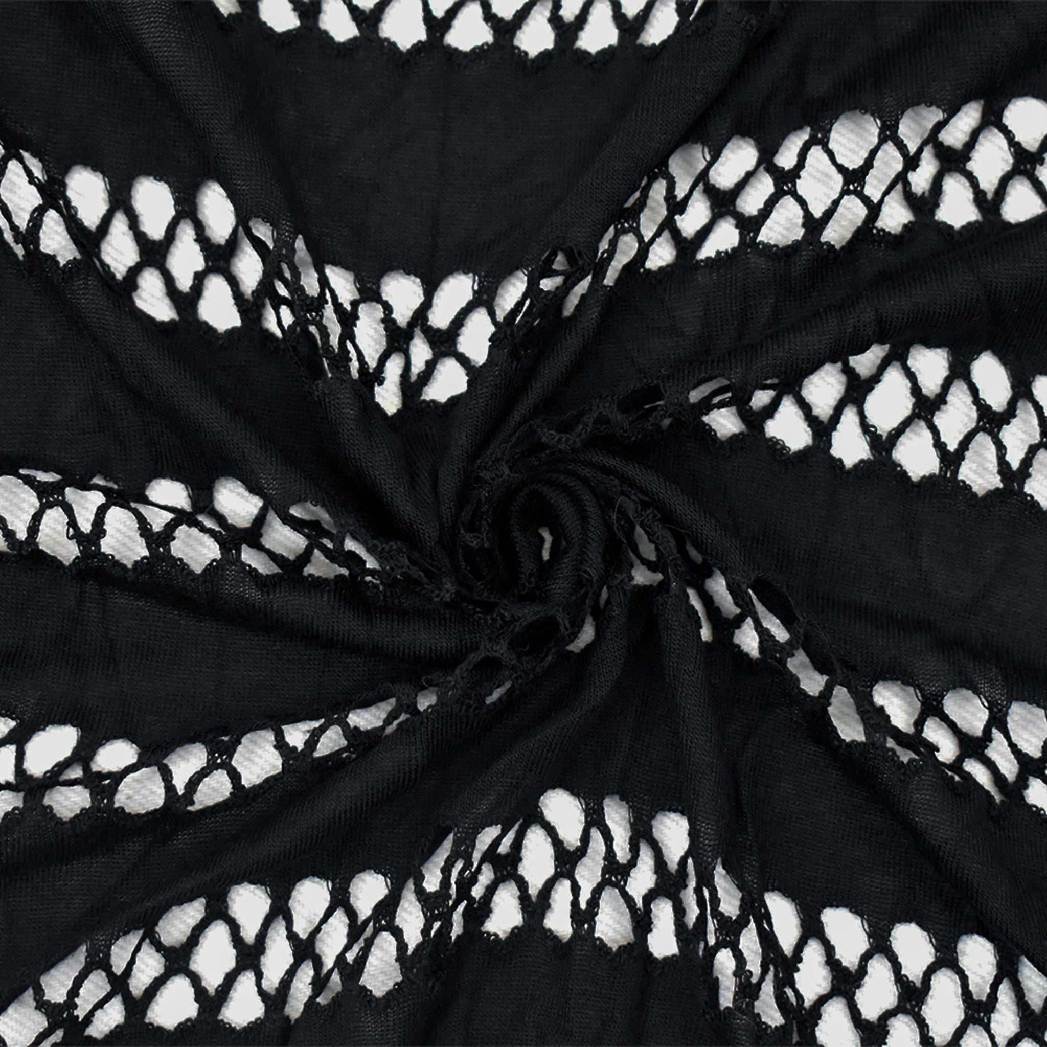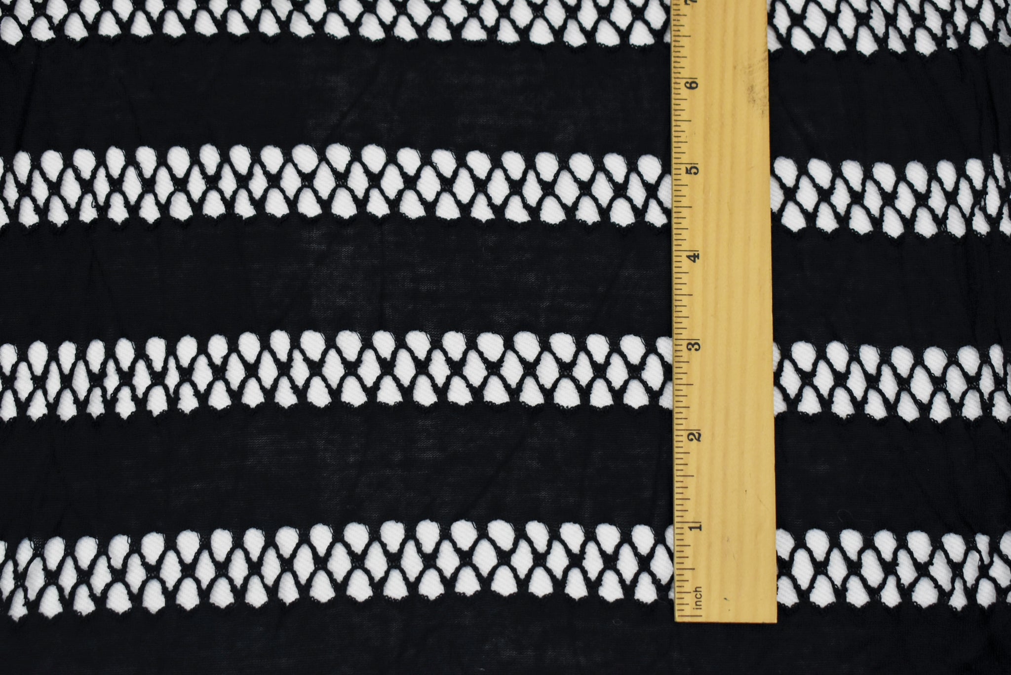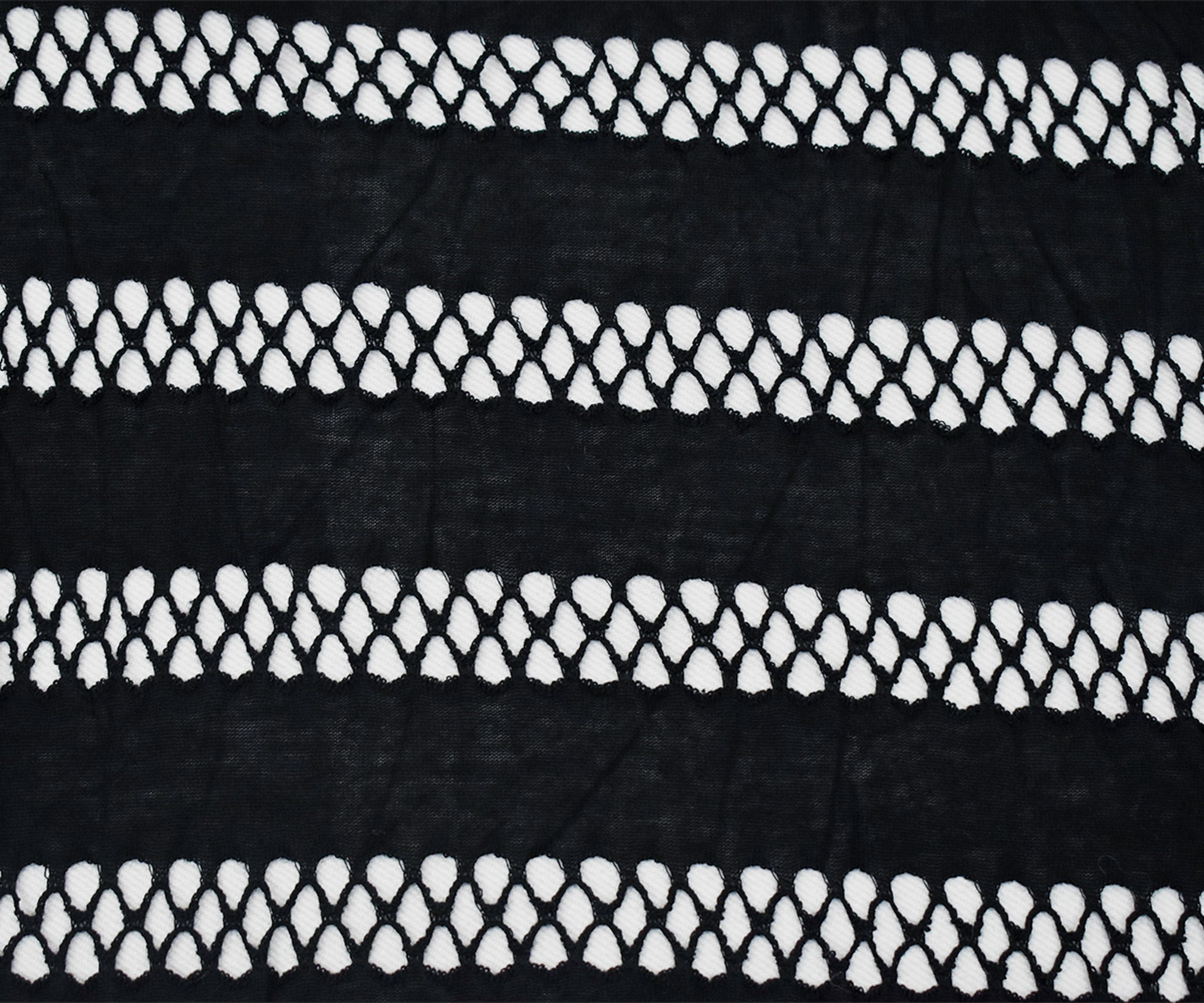 Black Rayon Stretch Spandex Net Stripe Semi-Sheer Knit Fabric