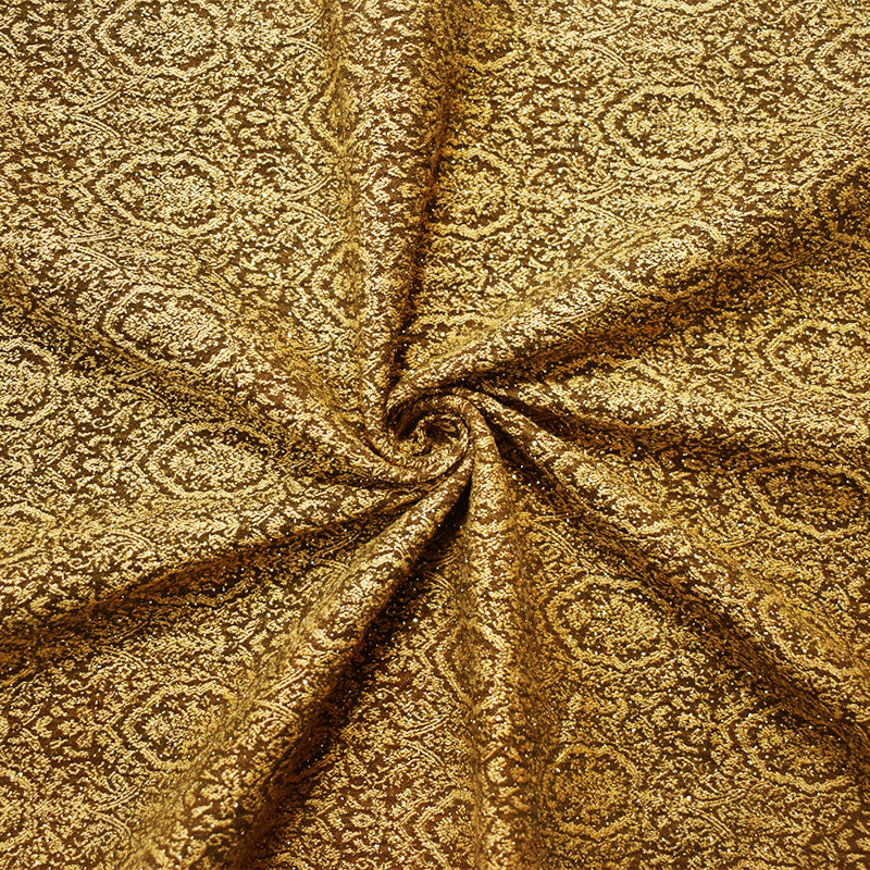 Brown-Gold Rayon-Poly Baroque Bengaline Jacquard Woven Fabric