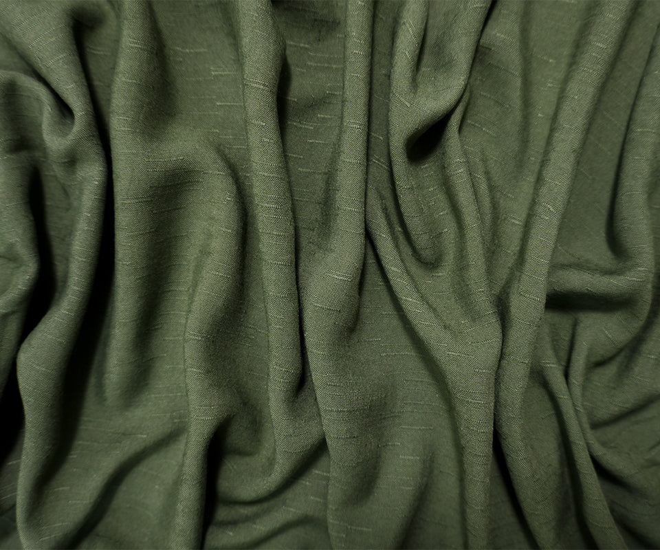 Green Rayon Slub Linen-Look Challis Woven Fabric