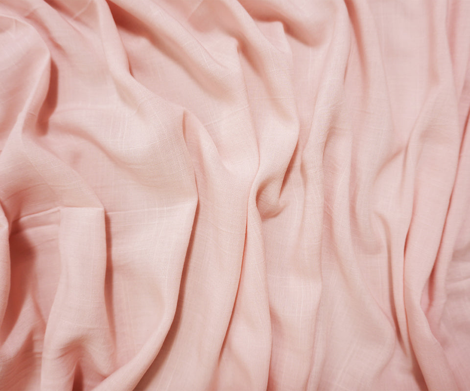 Light Pink Rayon Solid Cross Hatch Linen-Look Challis Woven Fabric