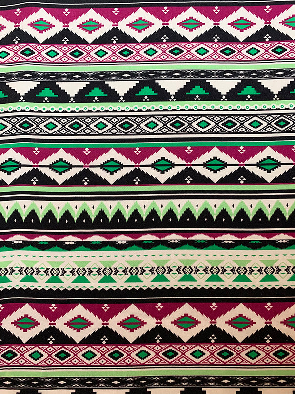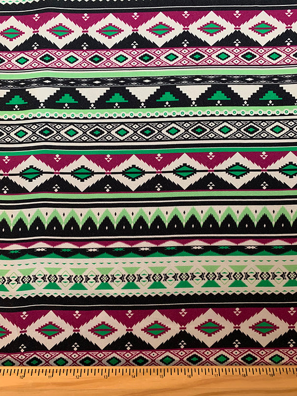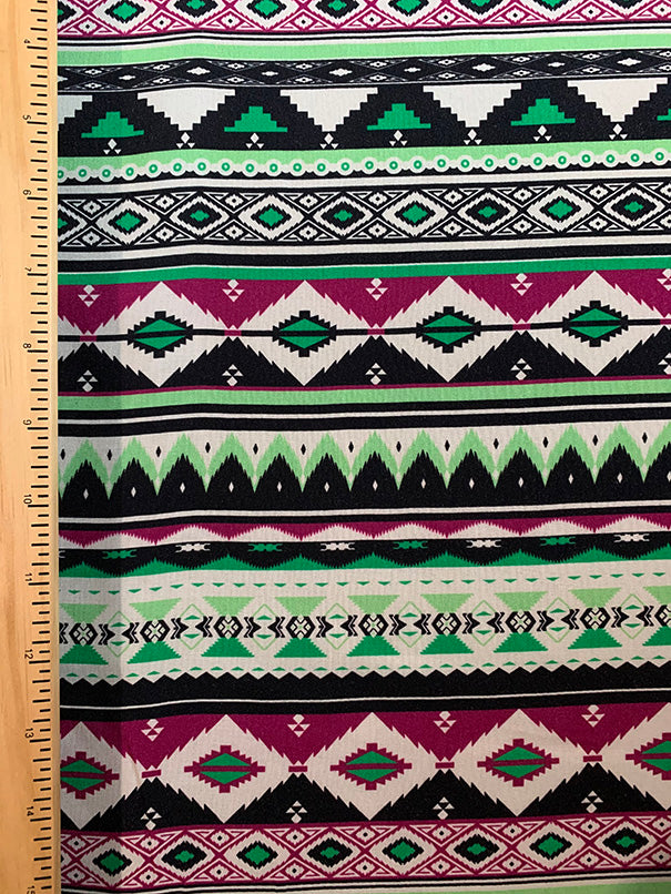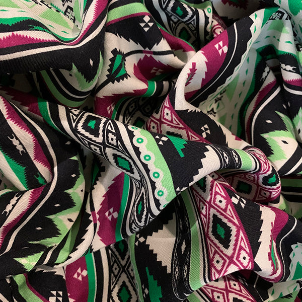 Lime and Magenta Multi Aztec Stripe Print Rayon Challis Fabric