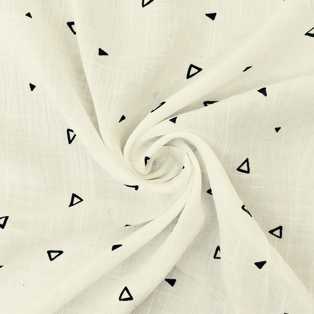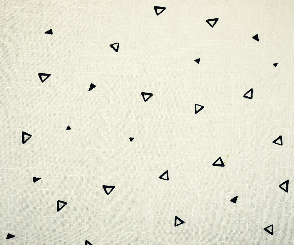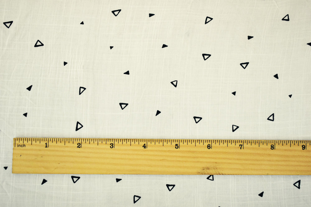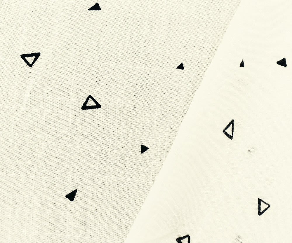 White-Black Rayon Triangle Semi-Sheer Printed Slub Woven Fabric